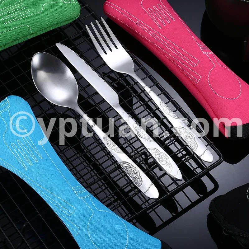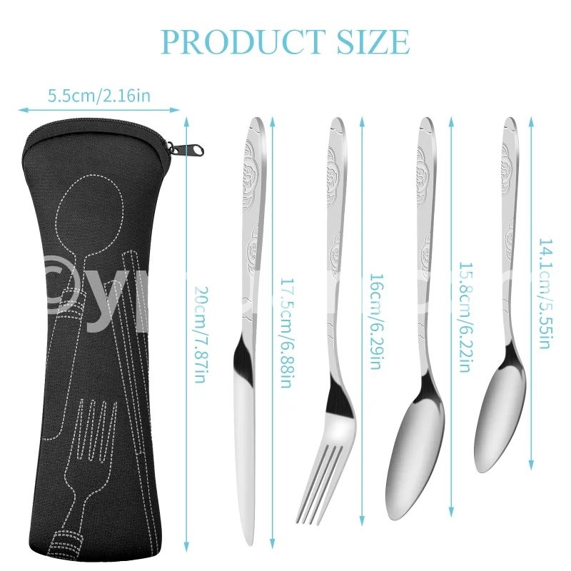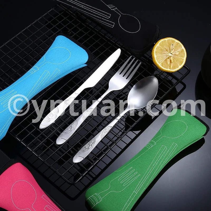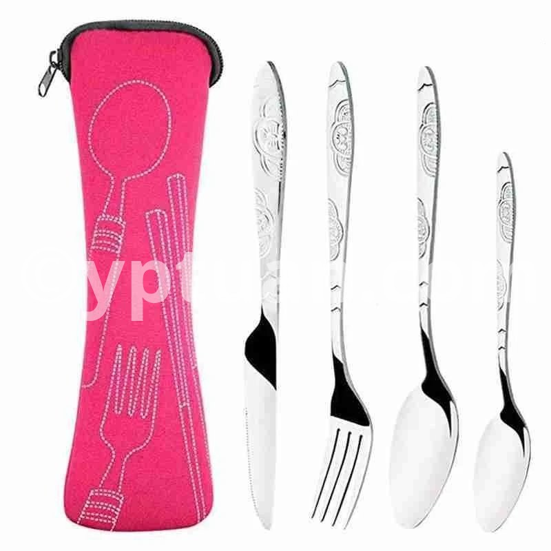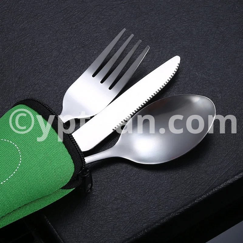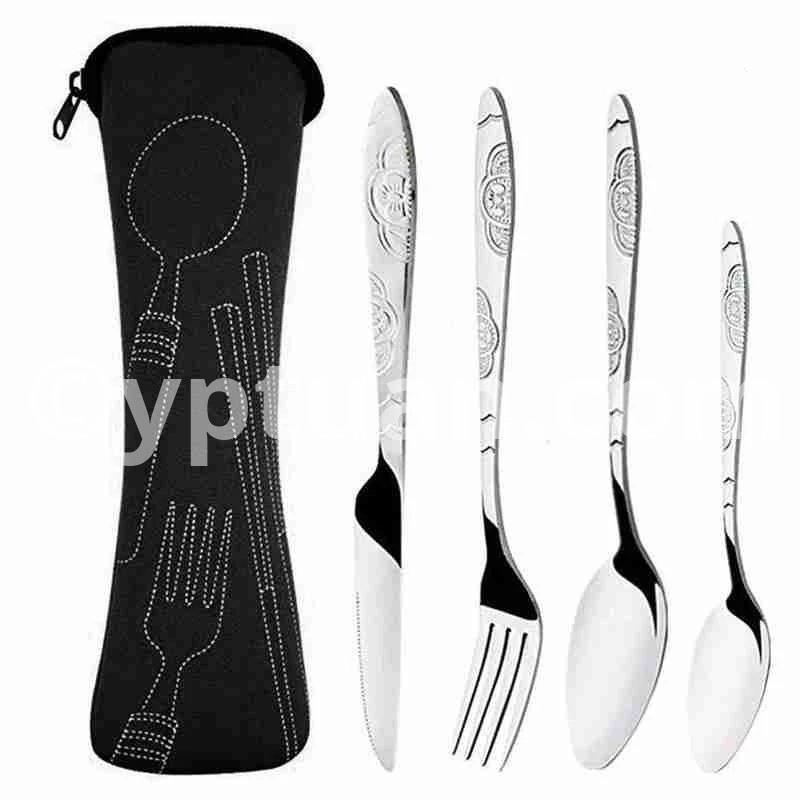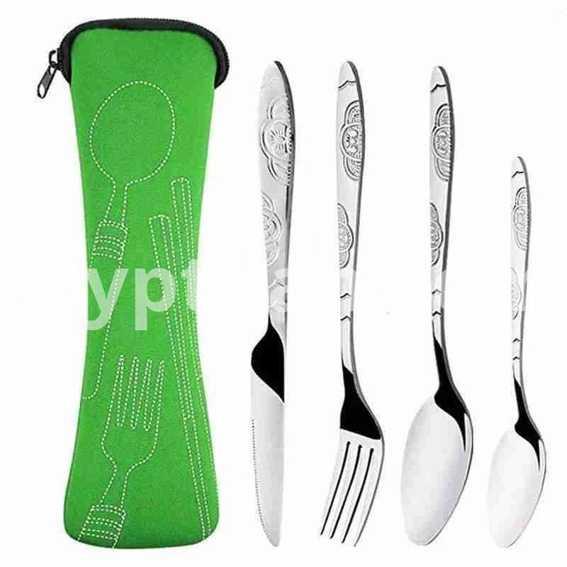 - This portable cutlery set is perfect for outdoor activities! It includes a knife, fork, spoon, and a carrying bags, all made from durable stainless steels. Great for camping, hiking, and picnics.