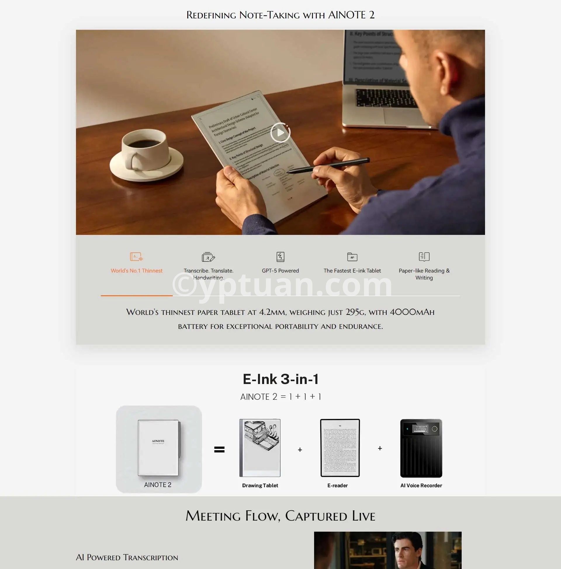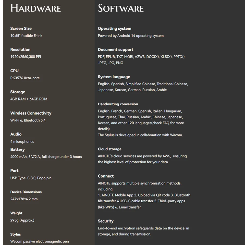 Meet AINOTE 2. A 10.65" paper-like screen that’s gentle on your eyes. A feather-light 4.2mm body that slips into your bag. AI tools that copilot your notes, your thoughts, and your tasks perfectly in place. Every swipe feels smooth. Every stroke feels real. Every idea stays captured, so you can focus on flow, not friction.