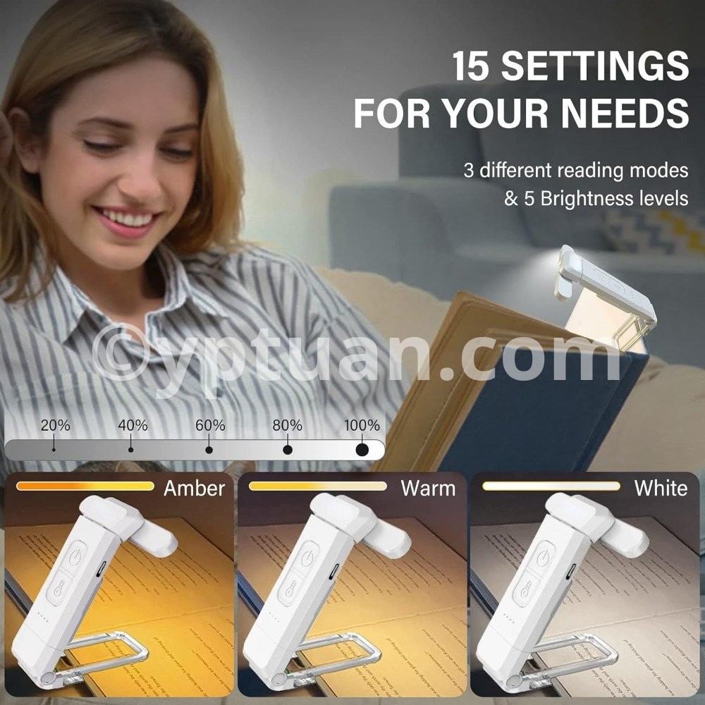 Our small book reading light has 3 different reading modes with 5 brightness levels. Whether you prefer amber, white or soft light, our USB rechargeable book light is perfectly suited to your needs.