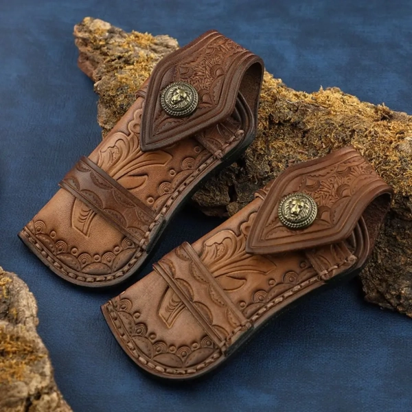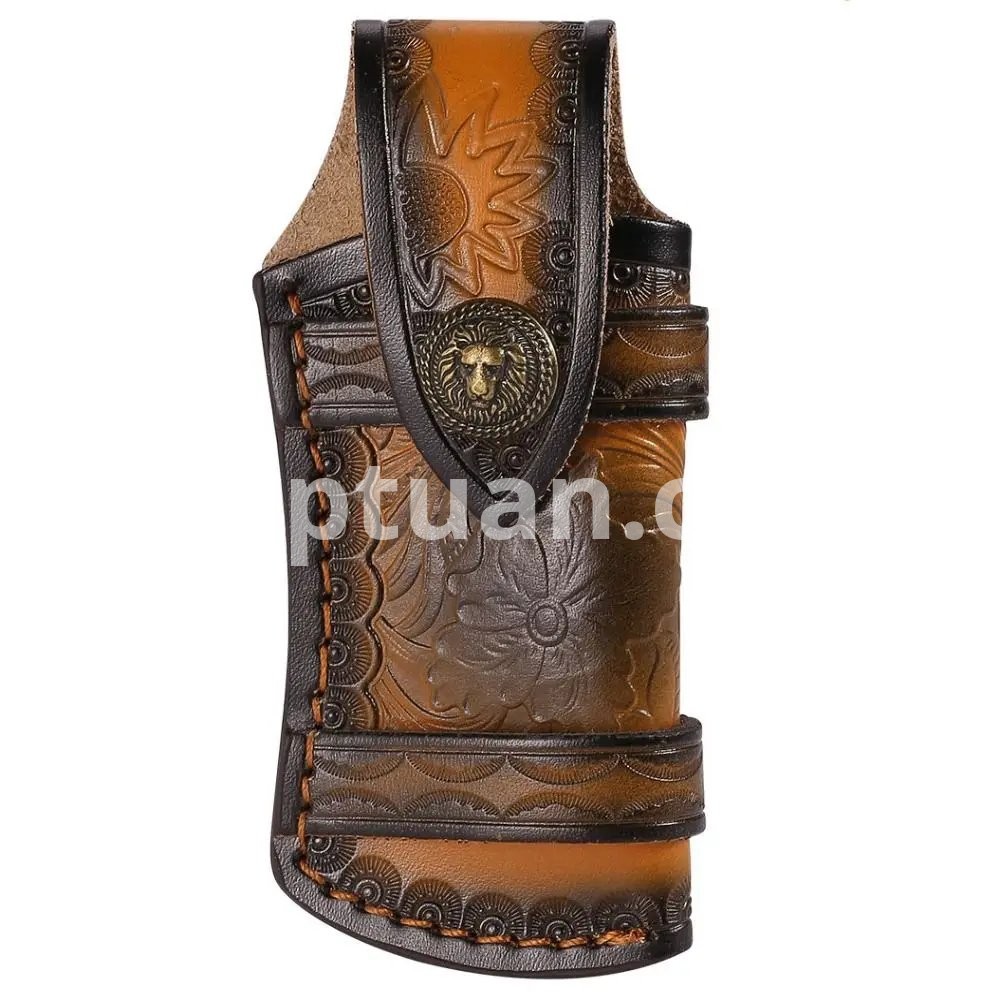 Brown Fold Knife Scabbard Tool Flashlight Belt Loop Case Holder Leather Sheath Pocket Hunt Camp Outdoor Carry Equipment
