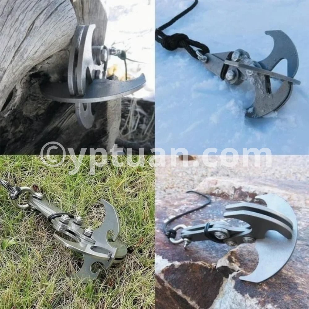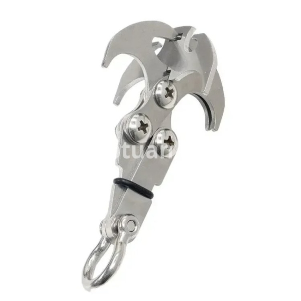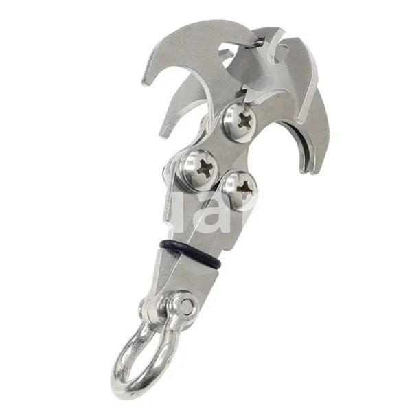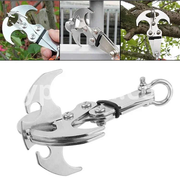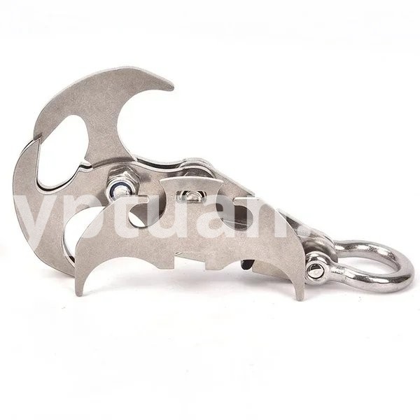 Made of stainless steel with strong bearing.Strong and hardness, hold up to 170lbs! Cool and eye-catching appearance.Smooth and polished exterior for hand comfort.Lightweight and compact size with folding claws, very easy to carry and use.A shrapnel bolt to keep the hook closed firmly.Additional hole is for the shrapnel bolt storage in the grapping hook, to keep the shrapnel bolt in place.For outdoor activities, survival training, adventures.Color:silverMaterial:stainless steelSize:8.5cm x 4.5cmPackage includes:1pc hookWarm Tip : Please be reminded that due lighting effects, monitor's brightness/contrast settings etc, there could be some slight differences in the colour tone of the website's photo and the actual item.Item Measure by hand, it could be 1cm different,your kind understanding will be much appreciated.