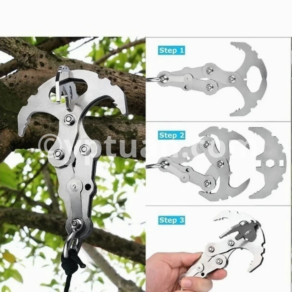 Folding Grappling Hook Multifunctional Stainless Steel Survival Outdoor Climbing Claw Carabiner Camping Gear Multitool Edc Gear