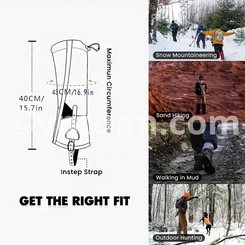 Whether it is mountain climbing, hiking, snow walking or hunting, running and other outdoor activities, these legging boots are your ideal companion.