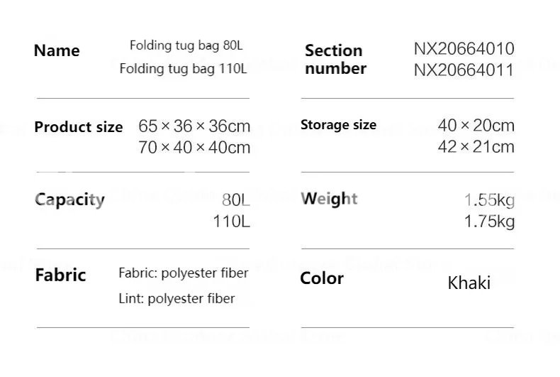 Size: 65x36x36cm (80L) / 70x40x40cm (110L)