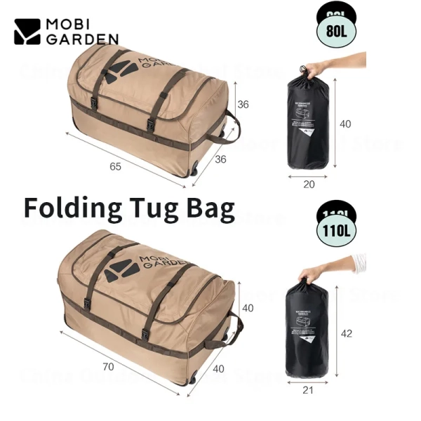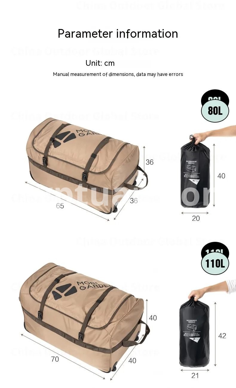 MOBI GARDEN 80L/110L Large Space Tugboat Bag Camping Portable Storage Outdoor Travel Folding Luggage Box Wear-Resistant Sundries Package New