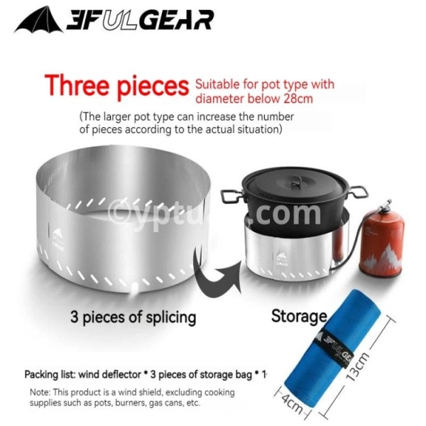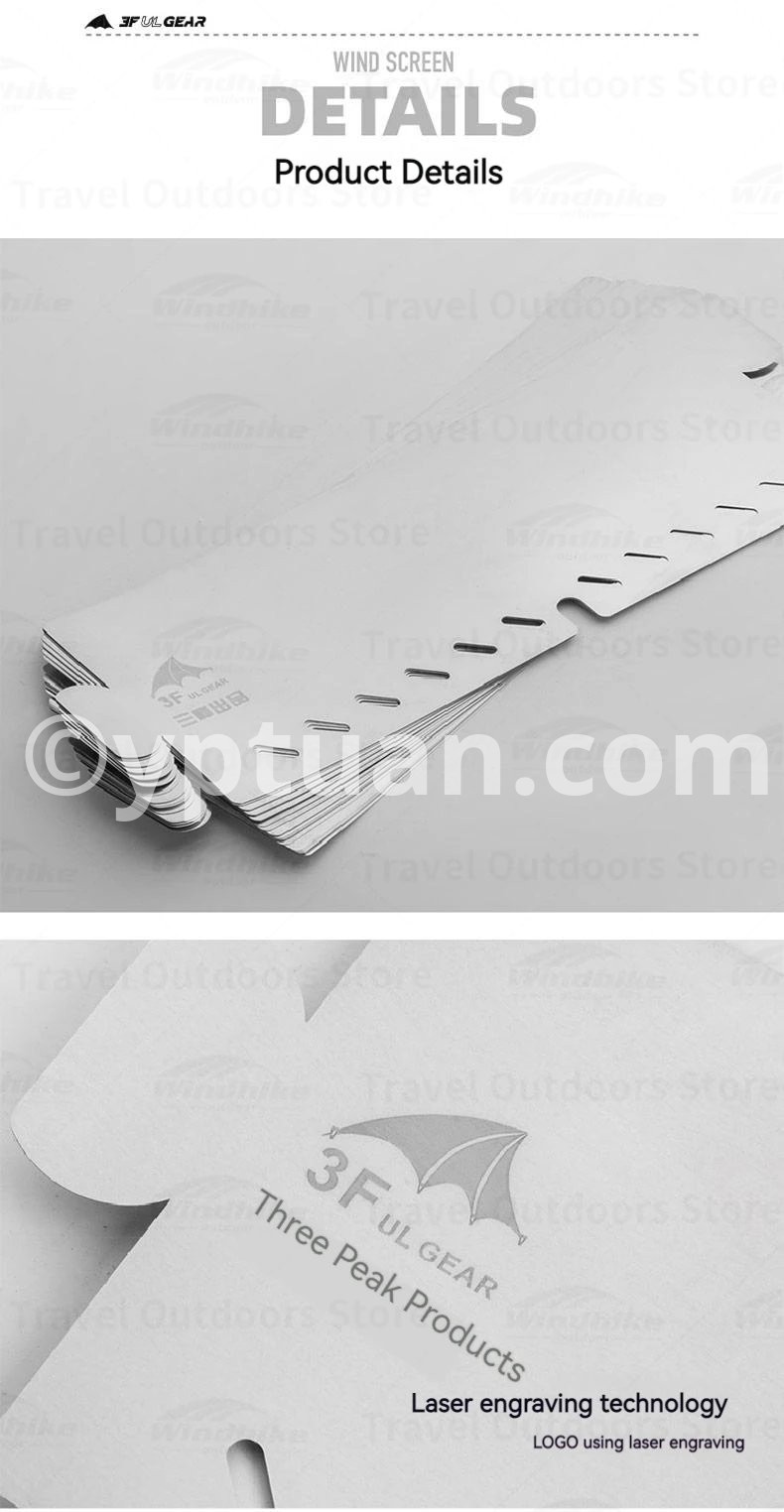 Brand: 3F UL Gear Name: Ultralight Wind Deflector Outdoor Camping Folding Stove Windproof Windshield Material: Stainless steel Type: 2pcs, 3pcs Single Size: 12x30cm(2pcs/pack);10.8x30cm(3pcs/pack) Packing Size: 4x13cm Single Weight: 25-26g/pc Packing Weight: 70g(2pcs/pack);93(3pcs/pack) Color: Silver
