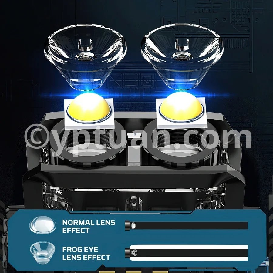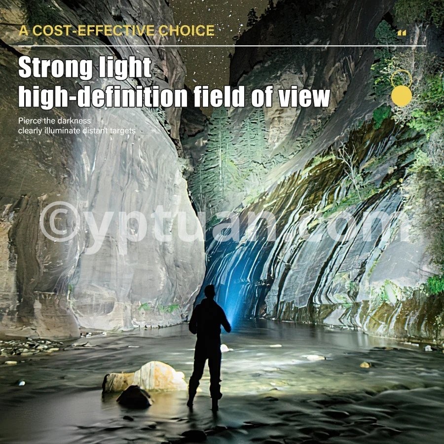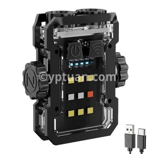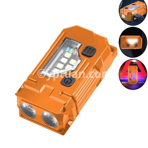 Gear switch: Click to turn on the flashlight Main light: strong light - weak light - flashing Side lights: white light-UV light-red blue flashing