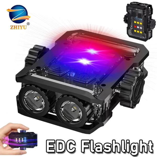 Mini EDC Keychain Flashlight USB C Rechargeable Torch COB Emergency Red and Blue Floodlight Outdoor Camping Fishing Flashlight