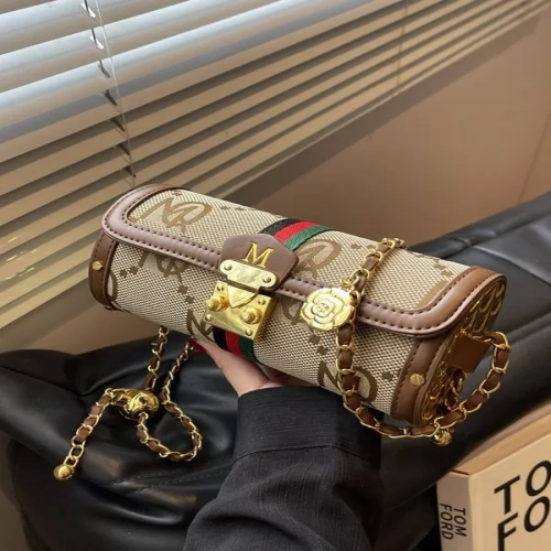 Double cap designer bag shoulder bag slant cross bag handbag ladies bag make-up bag chain bag C1119 gold buckle
