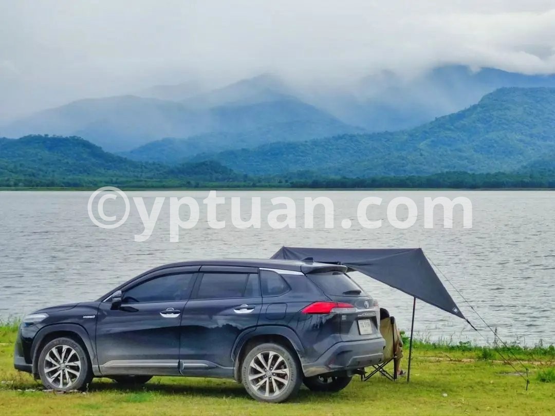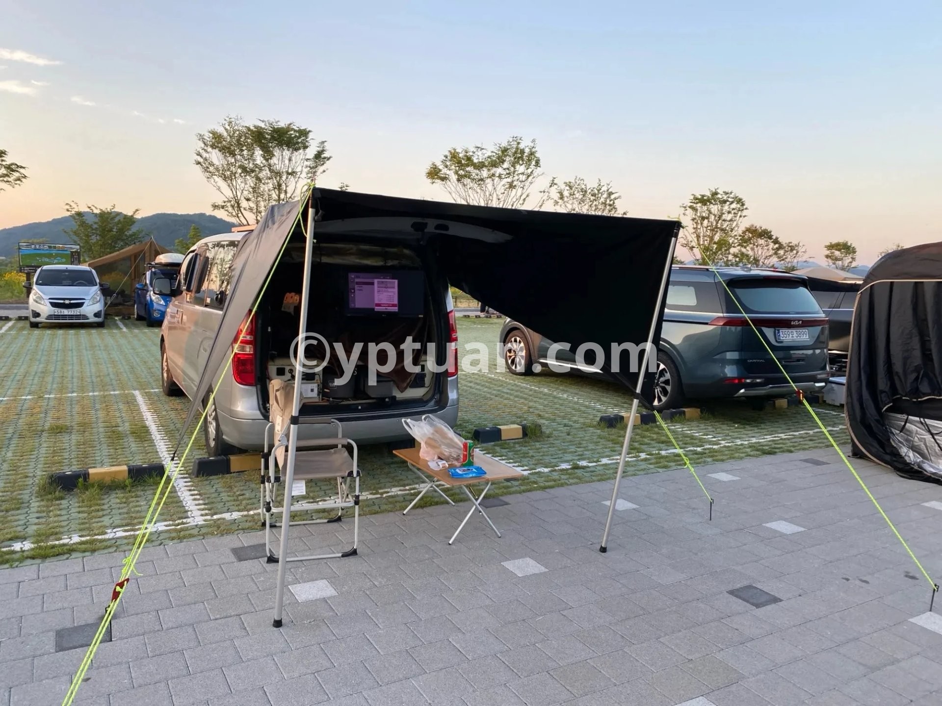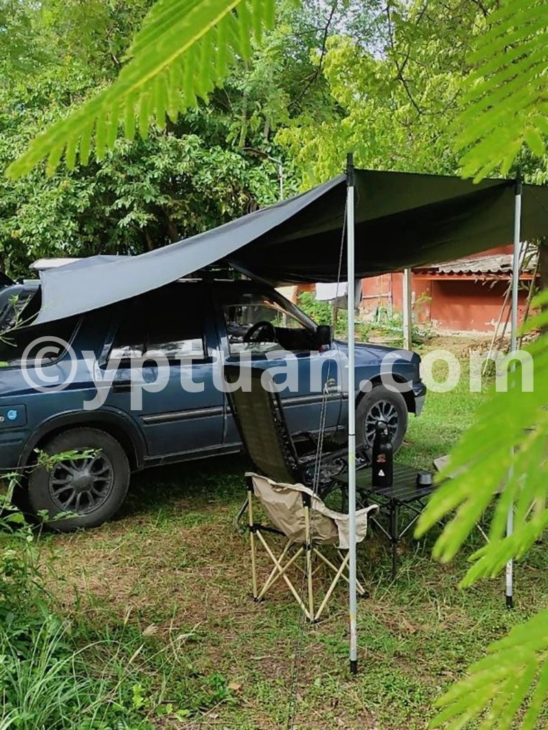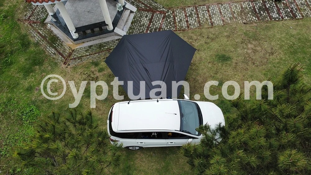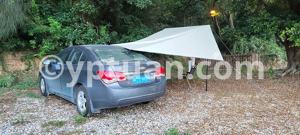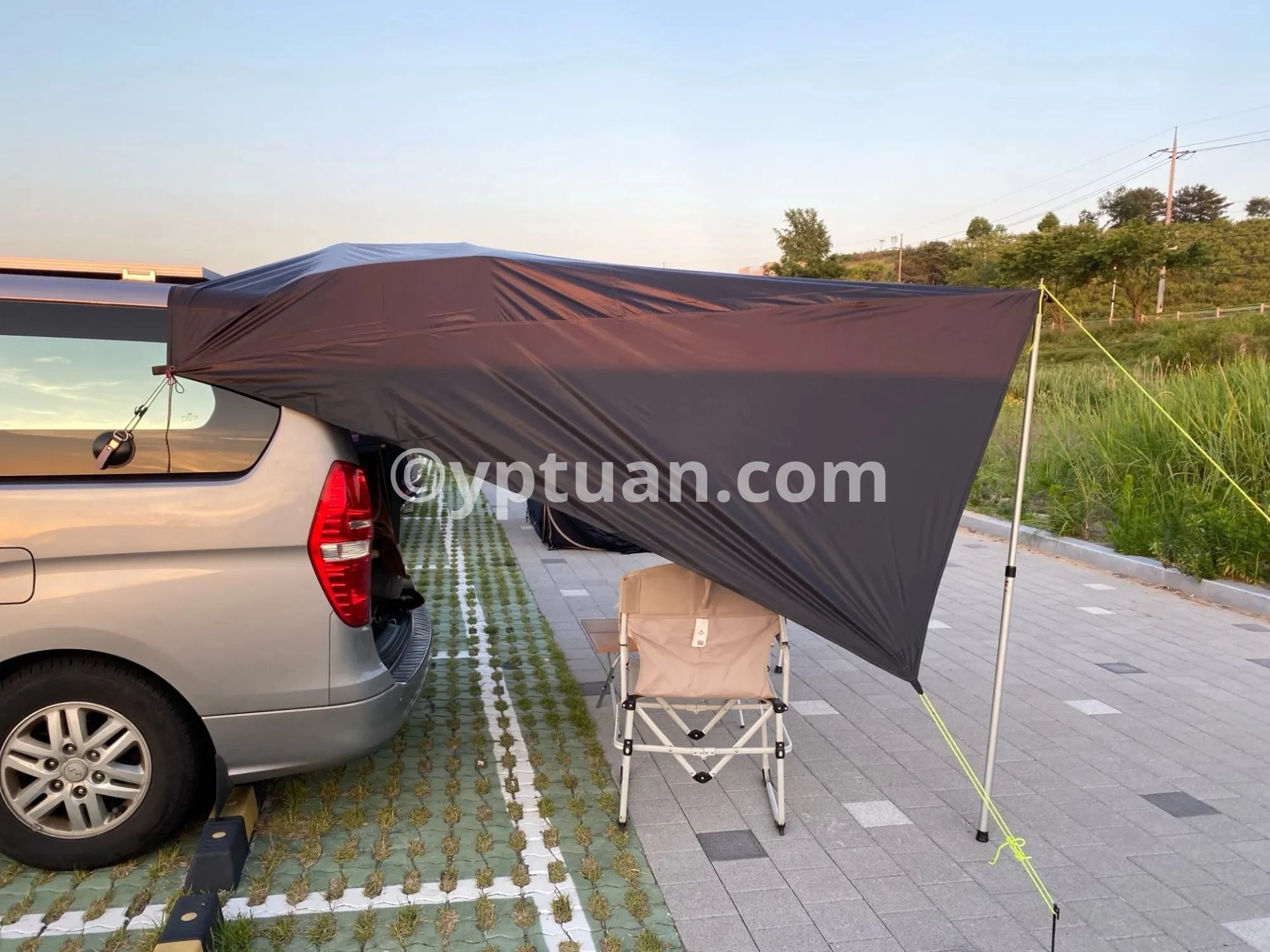 Item: side awning for car Material: black coating plaid fabric Colour: front : off white/black, back: black Waterproof index: 8000mm Transmittance:0.1% UV blocking rate:99%