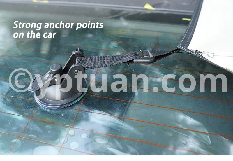 Tips: The suction cup anchor needs to be used on clean and smooth glass or painted surfaces. Can be used on almost all models: cars, SUVs, vans, etc.