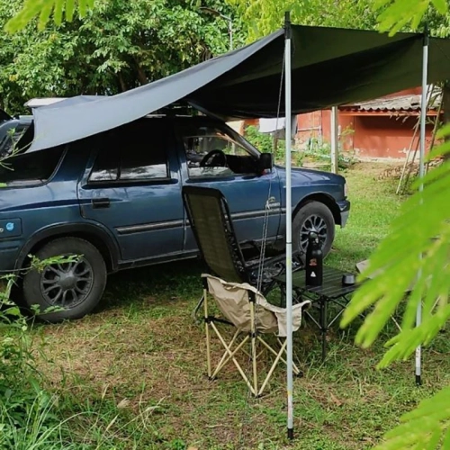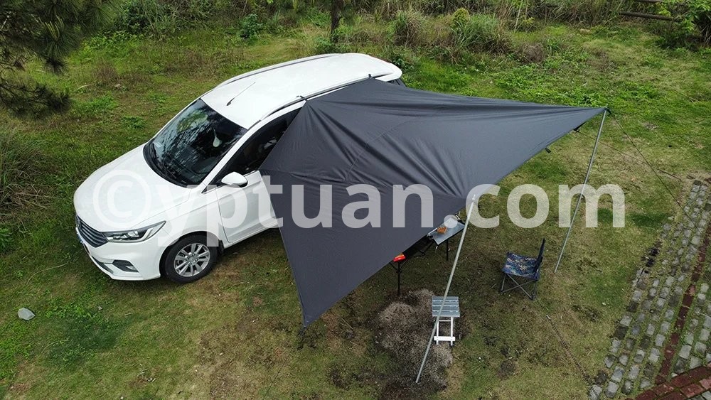 Bat Shape Car side Awning Black Coating Tarp 2x3 Outdoor Waterproof Camping Black Coated Car Rear Shelter Tent for SUV Van