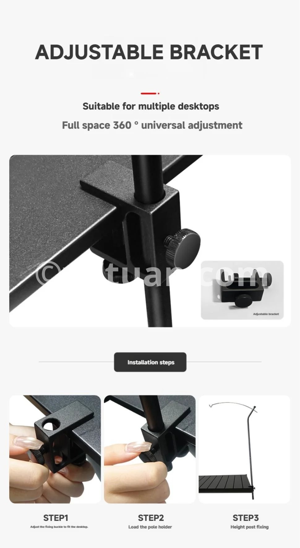 ADJUSTABLE BRACKETSuitable for multiple desktops Full space 360 ° universal adjustment