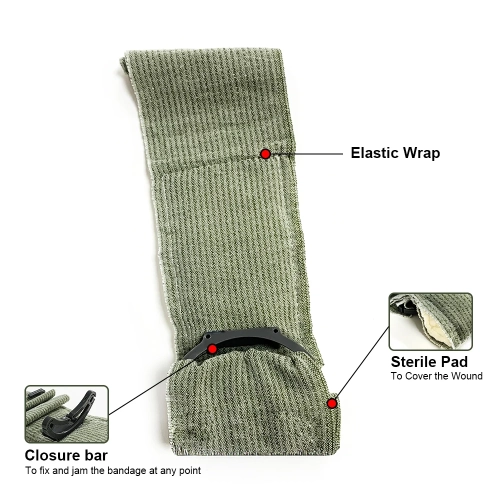 【HEMORRHAGE CONTROL】The compression bandage is a tactical first-aid device for the staunching of blood flow from traumatic hemorrhage wounds in pre-hospital emergency situations.