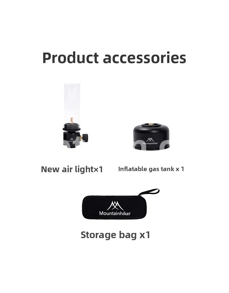 Brand: MOUNTAINHIKER Item: New Air Gas Lamp Material: Aluminum Alloy, Brass, Heart-resistant Glass, Stainless Steel Color: Black, Silver Gas Tank Capacity: about 25g Expand Size: 6.4x6.4x15.5cm Weight: about 350g (including storage box) Battery: about 3 hours life