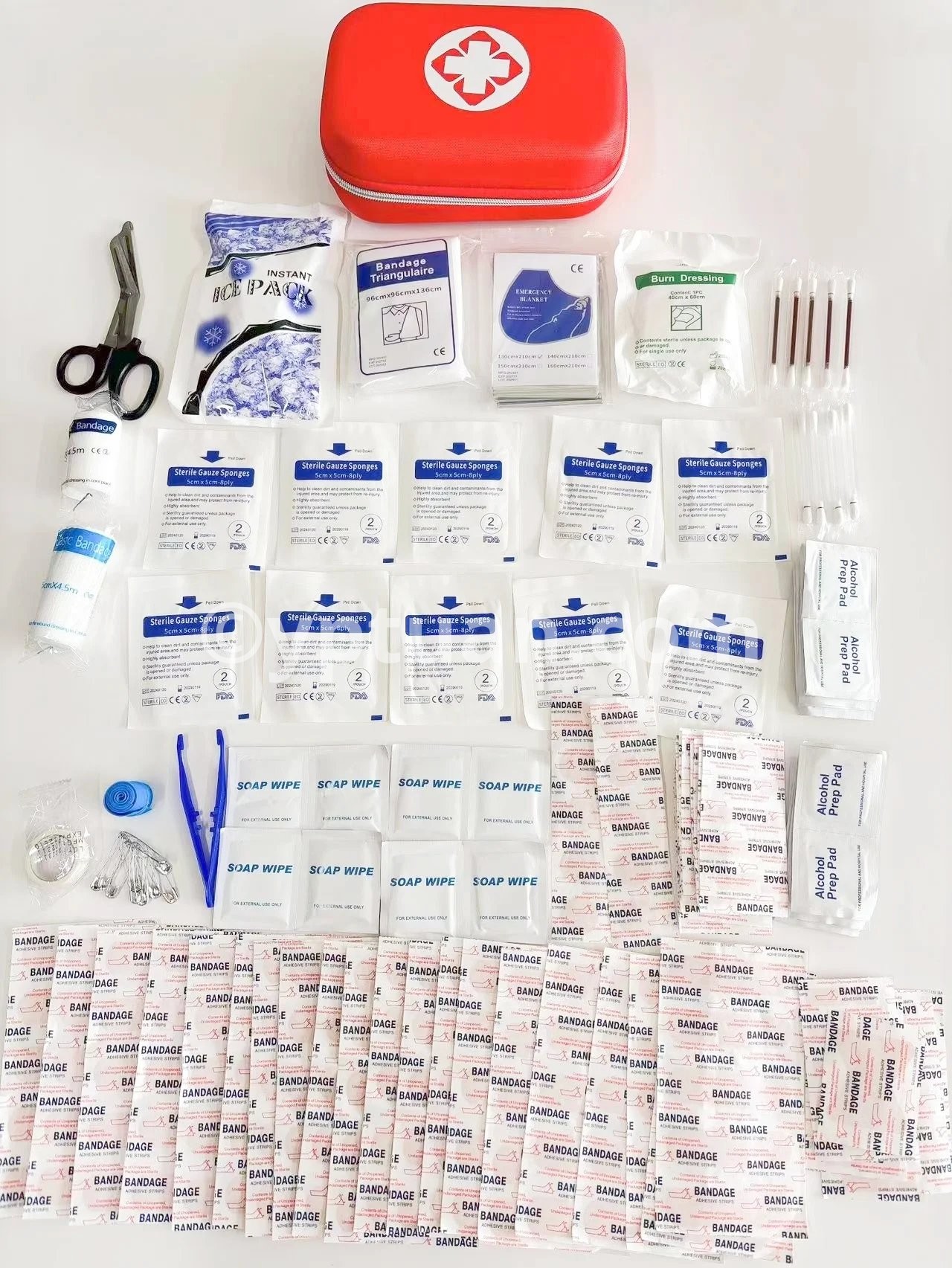 Outdoor Daily Emergency Supplies - With items such as scissors, ice pack, tweezers, safety pins, Various types of adhesive band-aids, first aid tape and emergency blanket, our small first aid sets are excellent outdoor camping accessories and one of your travel essentials. They are the ideal survival kit for boat, hiking, camping, rock climbing, and exploring, but they can be just as useful as survival gear at home or in the office!