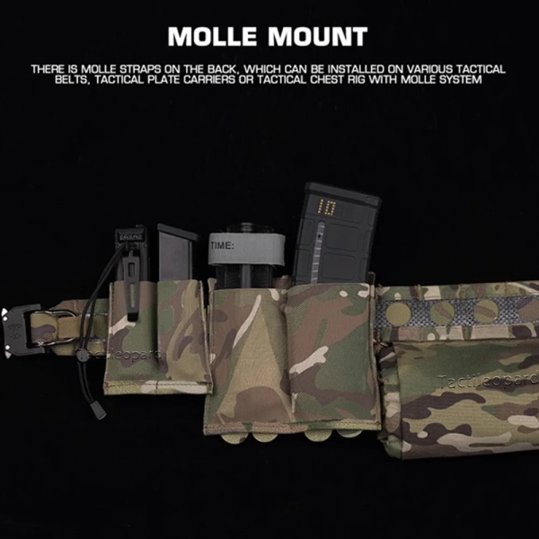 ① Lightweight Design Engineered to be thinner and lighter for enhanced mobility. ② Elastic Retention System Securely fits most AR-style magazines and other similarly sized equipment. ③ MOLLE-Compatible Back for secure attachment to belts, vests, and other MOLLE gear.