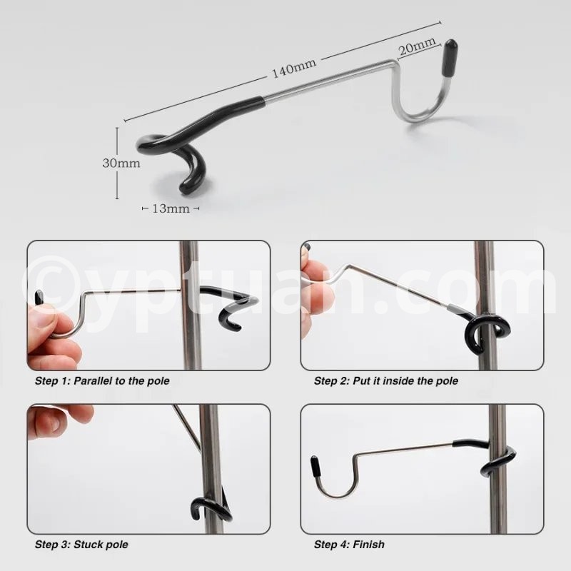 1. Material: Stainless steel + non-slip rubber sleeve 2. Colour: Black 3. Size: 14*3cm 4. Use scene: Outdoor camping 5. Application: 9-14mm pole 6. Quantity: 1/2pcs