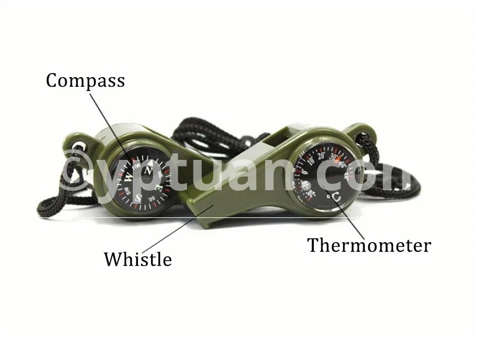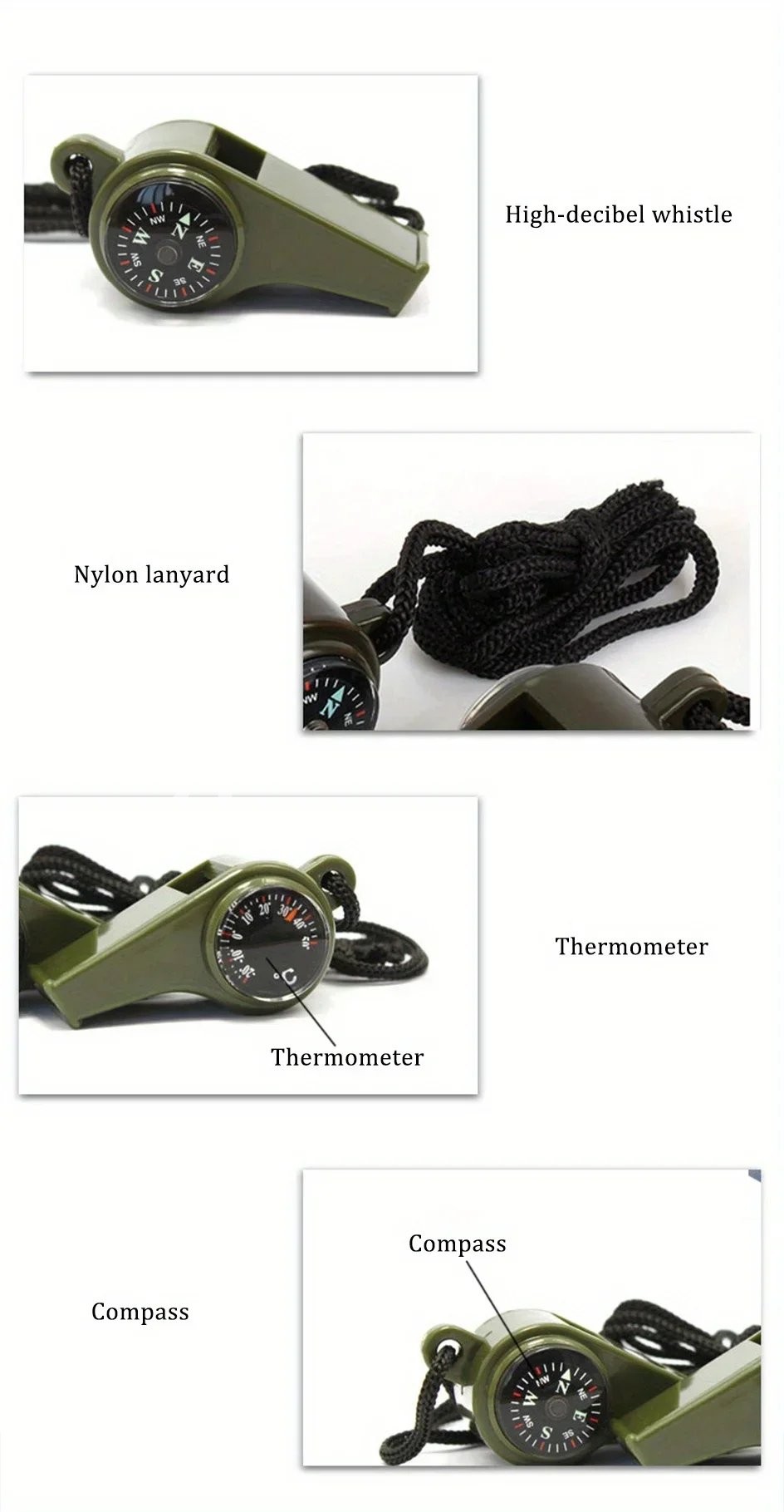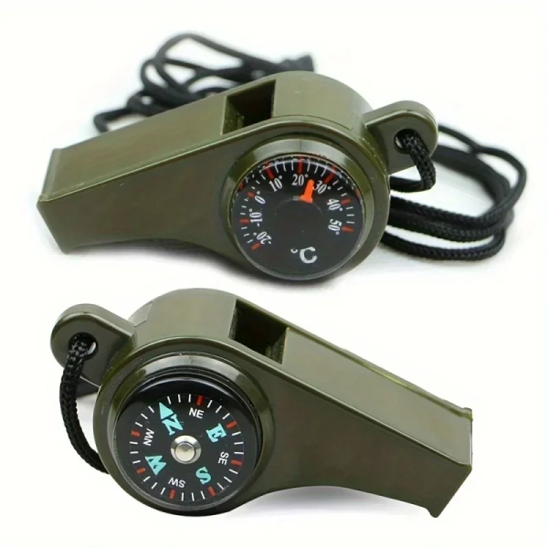 3-in-1 Emergency Survival Whistle with Compass & Thermometer: Ideal for Camping, Hiking, Outdoor Adventures & Events.