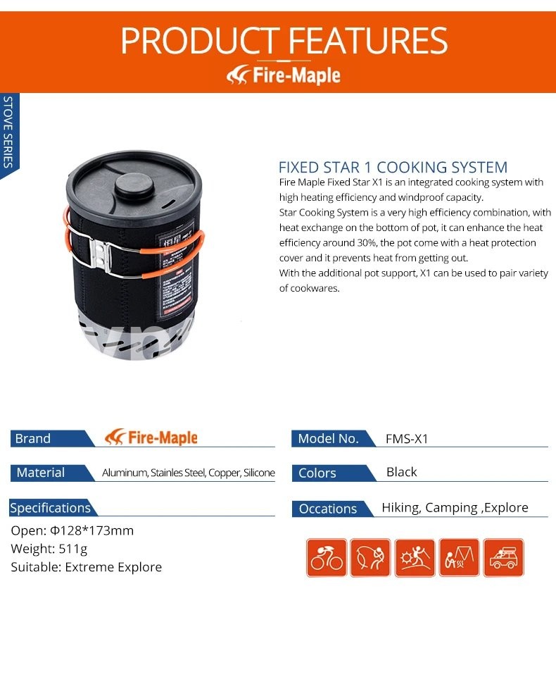 Fire Maple Star X1 Camping Stoves Outdoor Hiking Cooking System With Stove Heat Exchanger Pot Bowl Portable Gas Burners FMS-X1