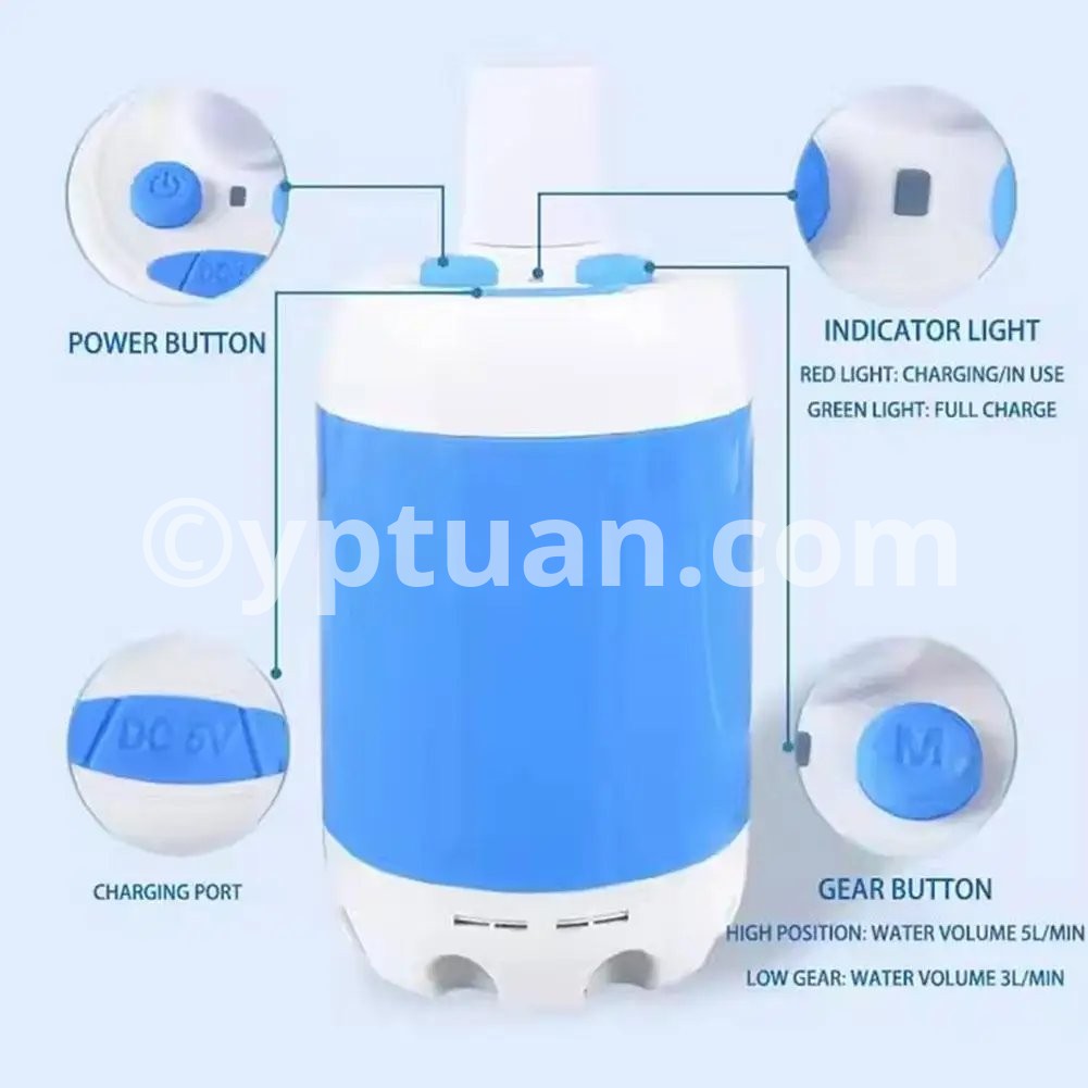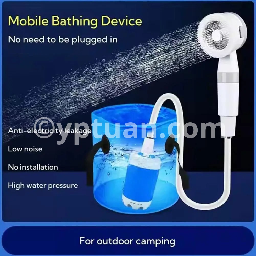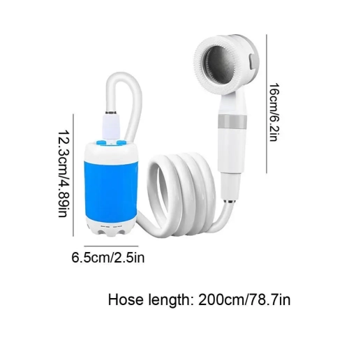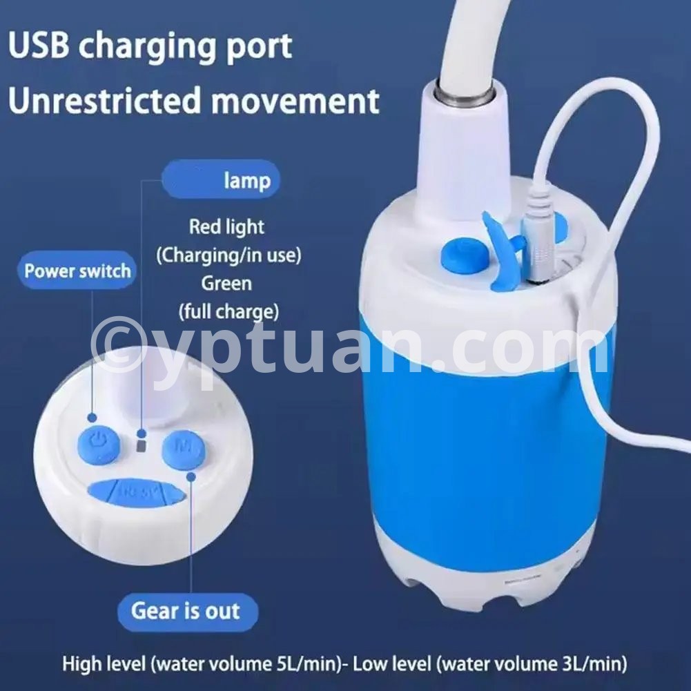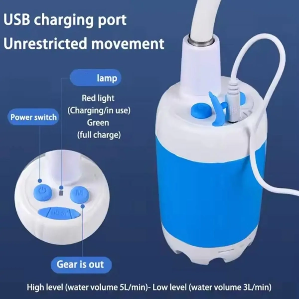 2. Dual-speed smart water pump: Low-speed mode 3L/min, gentle water flow, suitable for sensitive tasks such as pet bathing, watering delicate plants or rinsing camping equipment. High-speed mode 5L/min: High-pressure spray for efficient car washing, yard cleaning or quick outdoor showers. Equipped with an ergonomic shower head,