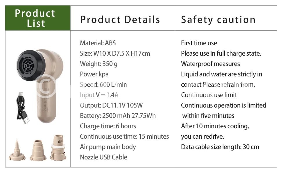 DOTWISE Mini Electric Air Pump Brushless Motor Wireless Air Compressor High Flow Small Air Mattres Kayak Paddle Outdoor Air Pump