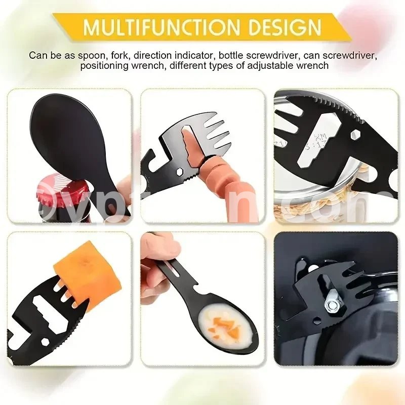 Outdoor Fork Spoon Versatile Outdoor Camping Tool Lightweight Fork Spoon Bottle Opener for Survival Tactical Utility for Easy Description: Crafted from high-quality steel for sharpness and durability. compact and lightweight design for easy carrying and comfortable holding. combines fork, spoon, wrench, bottle opener, and more in one tool. suitable for camping, picnics, barbecues, and various outdoor activities. smooth corners and excellent texture for indoor and outdoor use. Item Name: Multifunctional Fork Material: Stainless Steel Features: Multi-purpose, Rustproof, Durable, Long Lasting Size Detail: L: 17.5cm/6.89", W: 3.5cm/1.38" (Approx.) Notes: Due to the light and screen setting difference, the item's color may be slightly different from the pictures. Please allow slight dimension difference due to different manual measurement. Package Includes: 1 x Multifunctional Fork