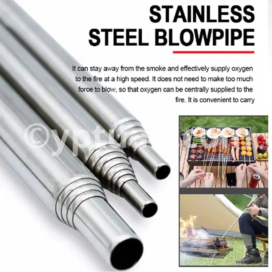 Stainless Steel Blowpipe Pocket Bellow Collapsible Air Blow Stick Campfire Fire Tool Outdoor Bushcraft Camping Hiking Cooking