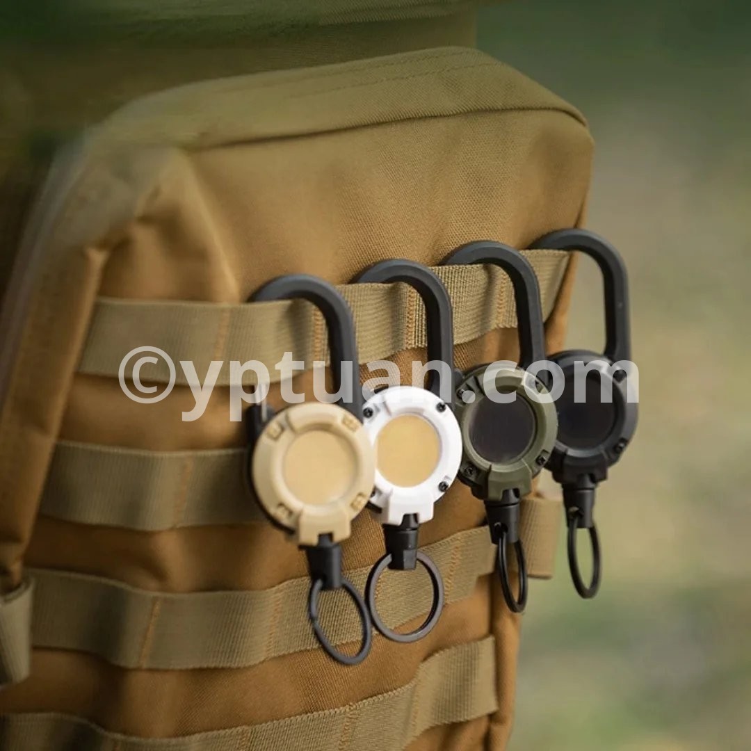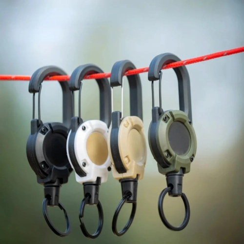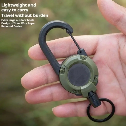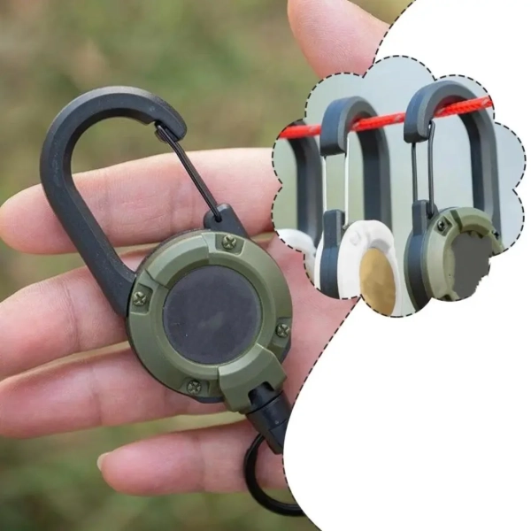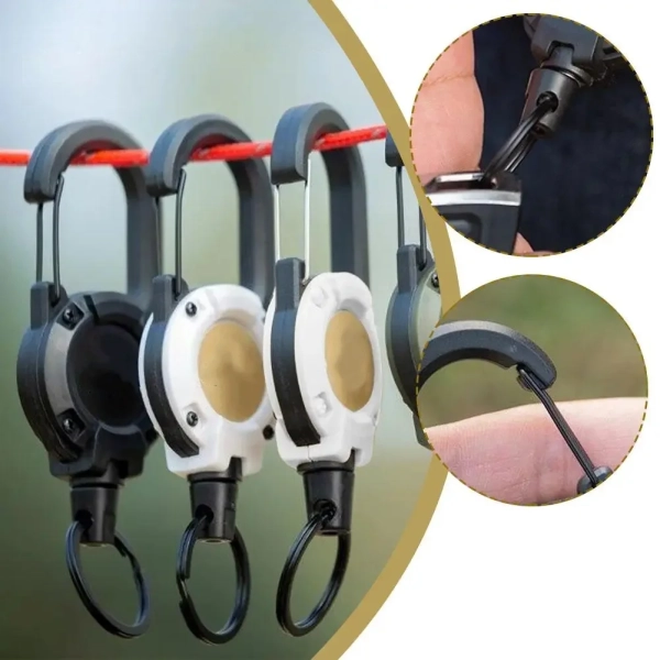 Material: ABS shell and steel wire rope Size: 12.3*4cm /4.84* 1.57in Color: Three colors, two styles 1.Automatic Rebound Design: It quickly returns to its original position after use, preventing during storage, which is worry - free and labor - saving. 2.Sturdy Metal Boasting high load - bearing capacity and corrosion resistance, it is not easily damaged even with frequent use. 3.Large - Caliber Hook: It can easily pass through thick ropes and backpack straps, being adaptable to various items and extremely flexible to use. 4.Super - Easy to Operate: Just one pull and one click to finish the operation. Both the elderly and children can quickly get the hang of it. 5.Lightweight and Portable: With a compact shape, it can be easily carried in pockets or attached to bags. You can use it wherever you go without any burden during travels. Package includes: 1pc Outdoor telescopic buckle