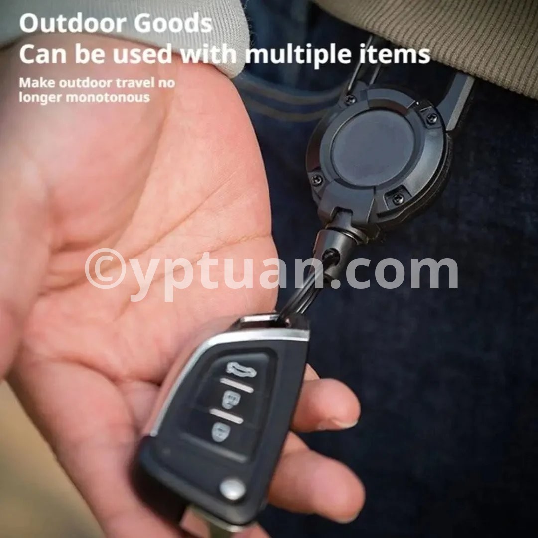 1pcs Heavy Duty Retractable Pull Badges ID Reel Carabiner Key Chain Steel Wire Rope Buckle Key Holder Outdoor Keychain Tools