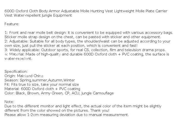Tactical Vest Waterproof Outdoor Body Armor Lightweight JPC Molle Plate Carrier Hunting Vest CS Game Jungle Security Equipment