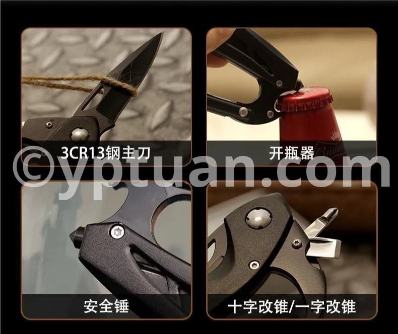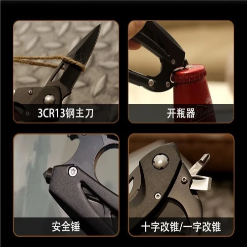 New Outdoor 5 in 1 Tool Multi Functional Portable Tool Mountaineering Buckle Outdoor Mountaineering Stainless Steel