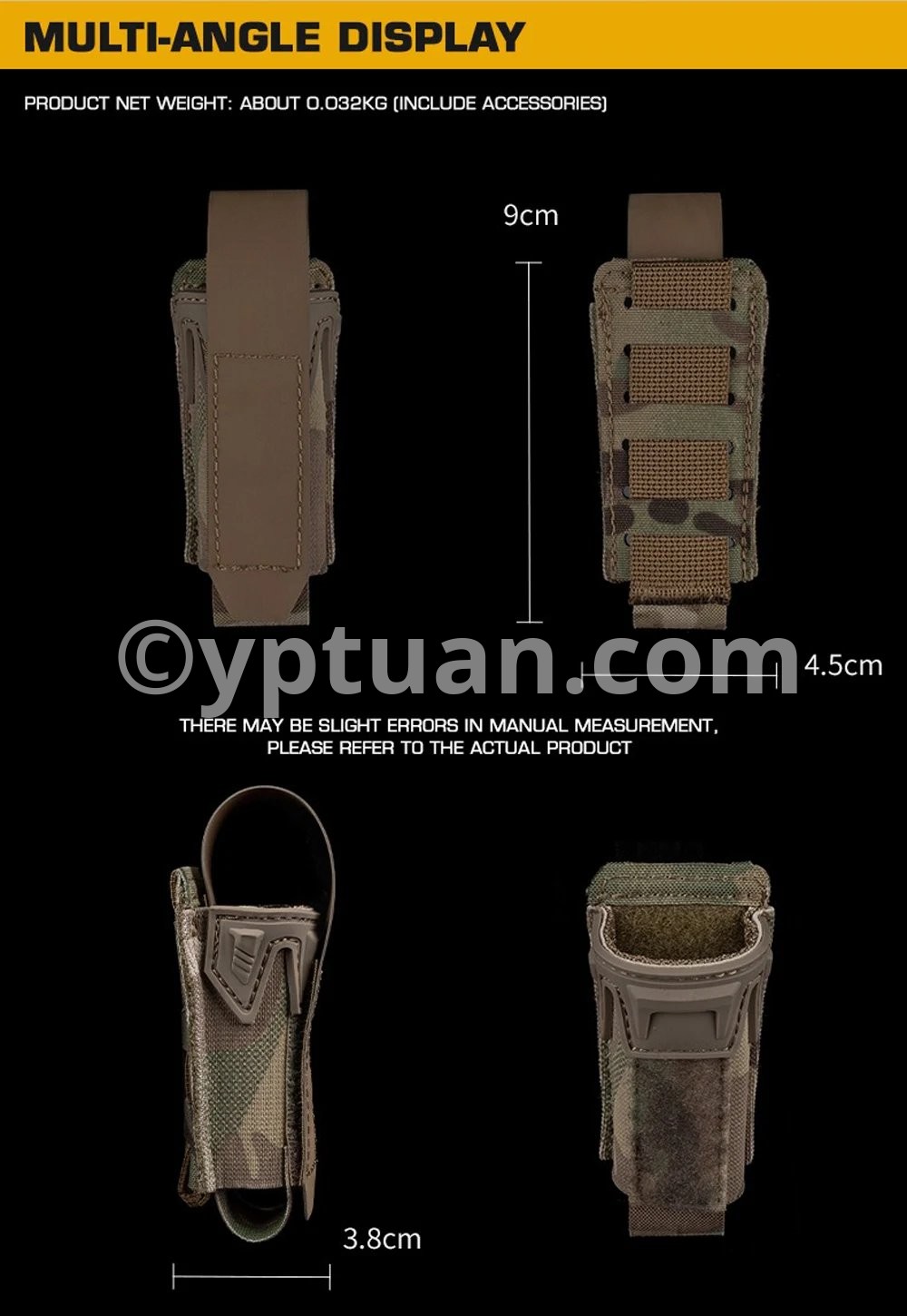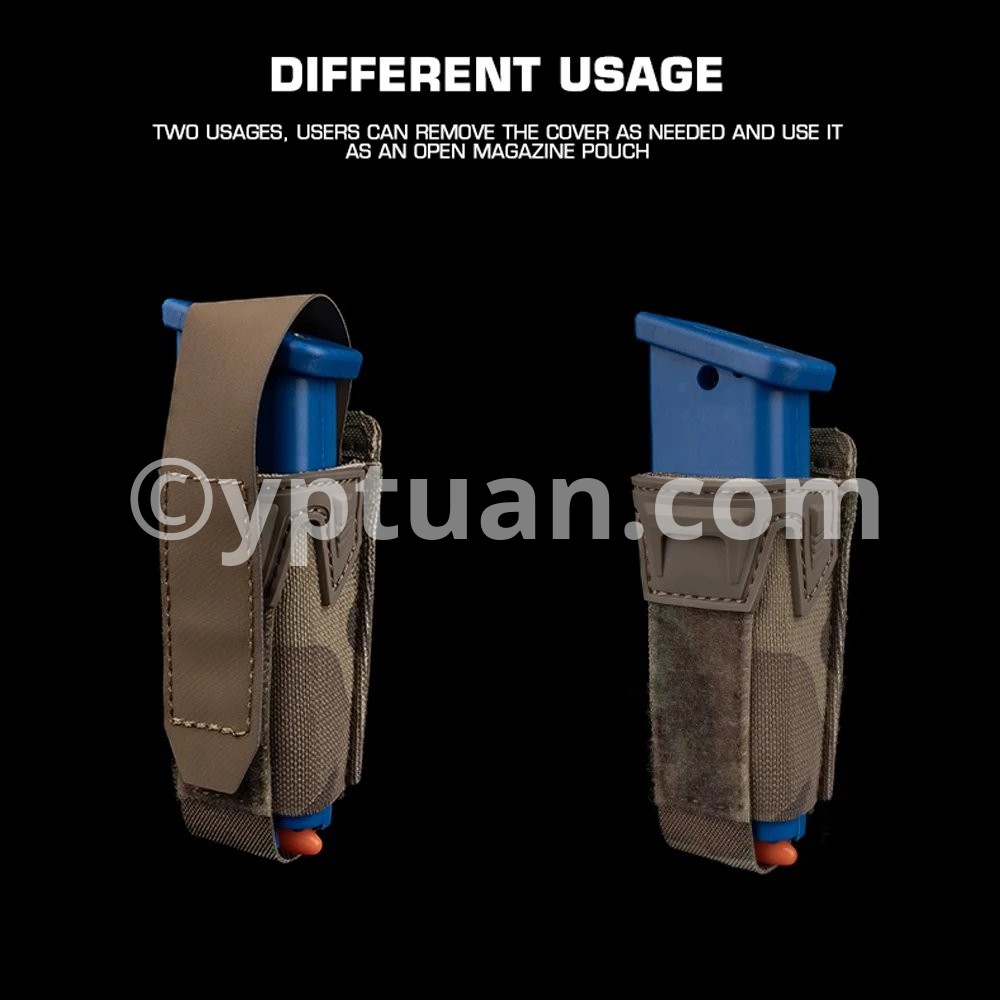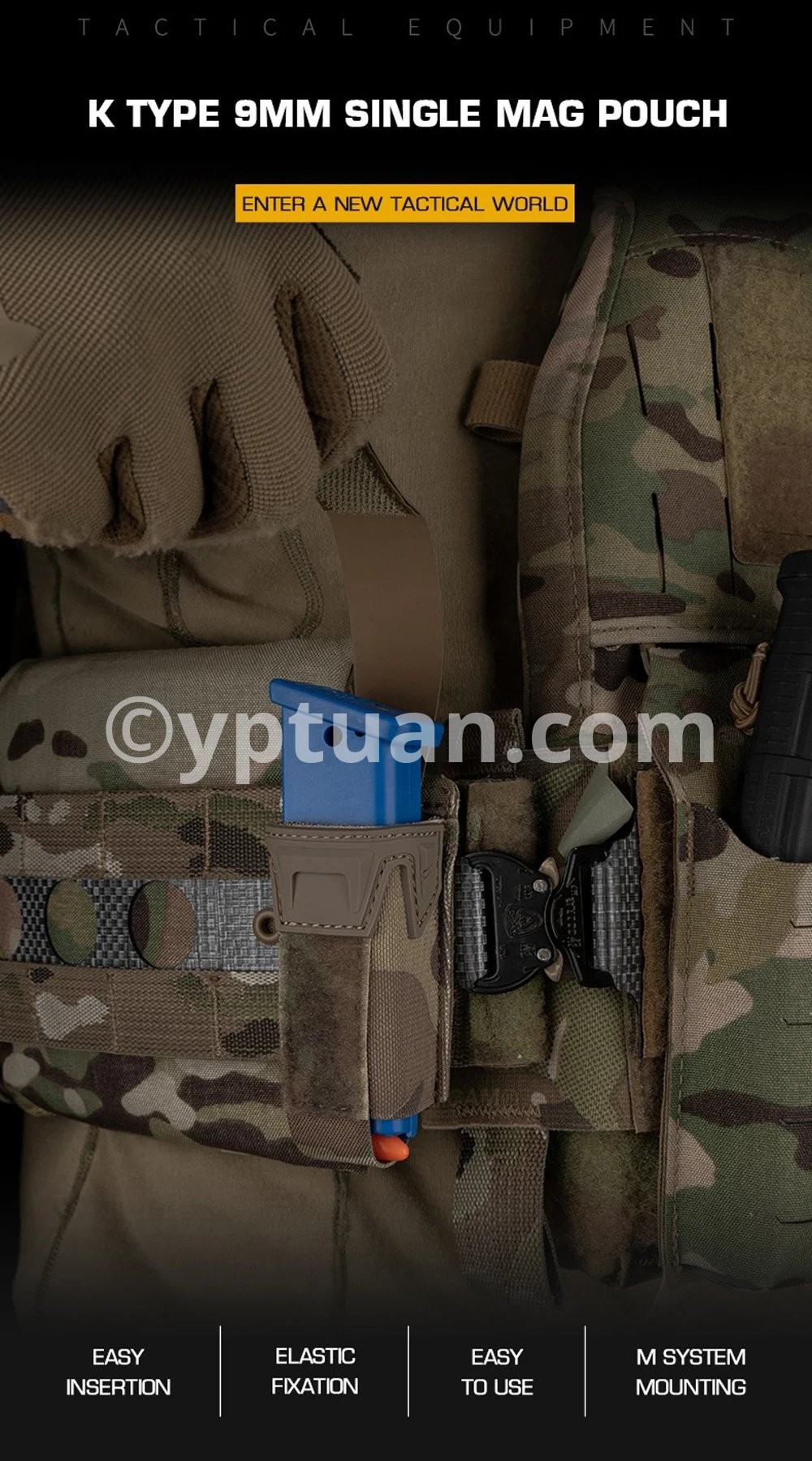 9MM Airsoft Mag Pouch Agilit Style Pistol Magazine Pouch With Protective Cover Plate Quick Release MOLLE Tactical Belts Gear Product Name:K type 9MM single mag pouch Item No.:MG-125 Product size:12.5*4*4cm Product net weight:0.032KG Product gross weight:0.04KG Product colour:Matte Black/Wolf Grey/Ranger Green/Coyote Brown/MC/MCBK Main material:CORDURA Fabric Elastic band Applicable scene:Hunting, outdoor sports and other Tactical Airsoft Games etc.