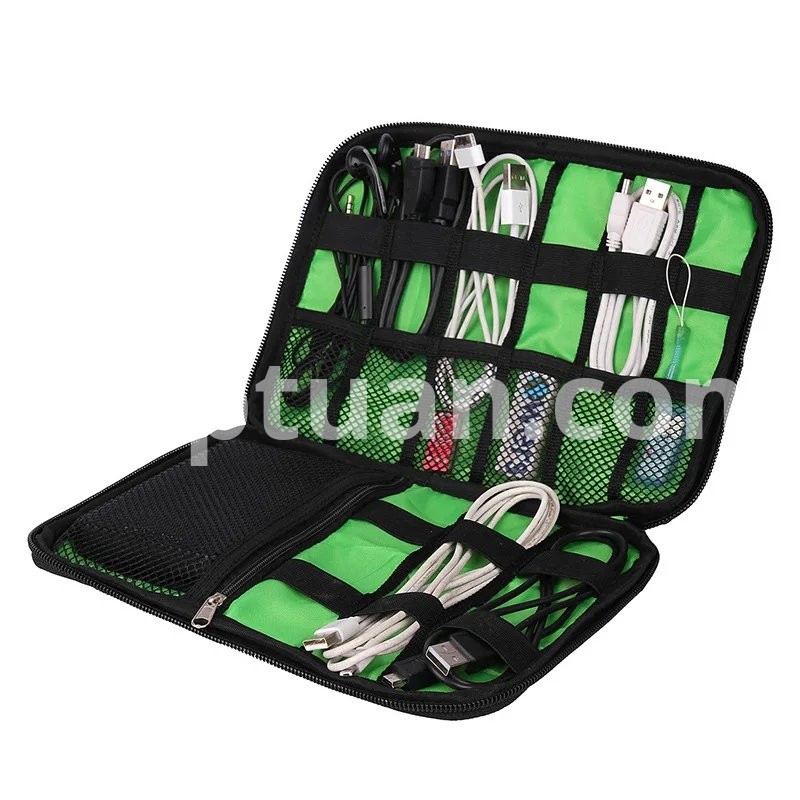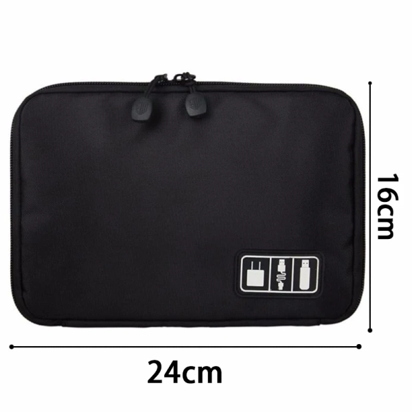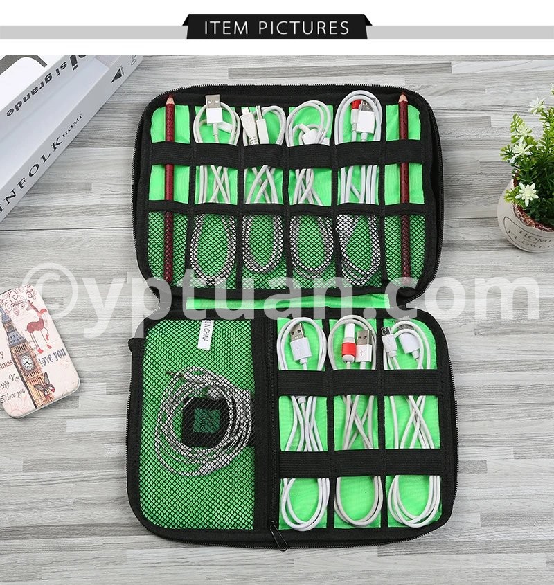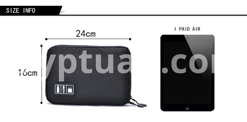 Describe: 100% Brand New And High Quality Material: nylon + mesh Size: 24*16*2.5cm Color: Blue, Black, Orange, Gray Weight: 100g Fits: Charging cable, charging treasure, u disk, pen Package Include: 1 PC cable organizer case(USB cable Earphone Pen Batteries are not included) Note: please allow 1-2cm differs due to manual measurement.