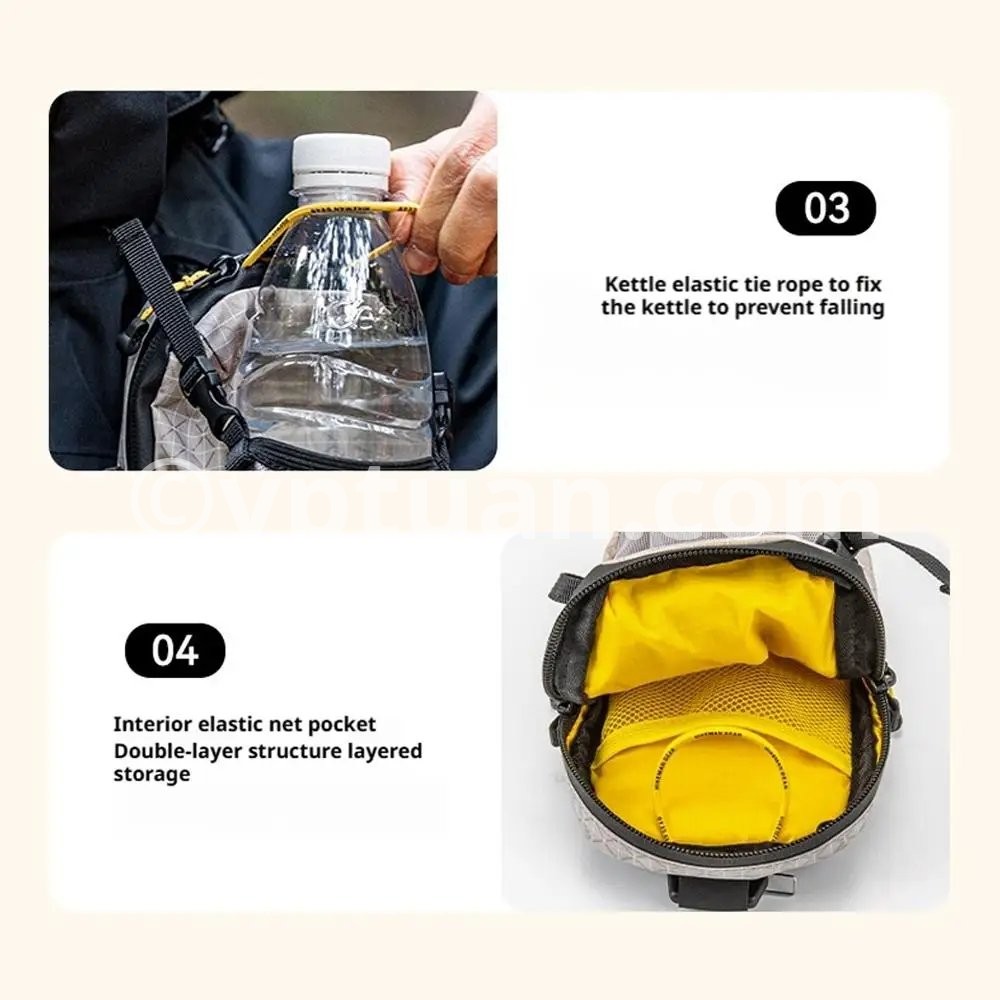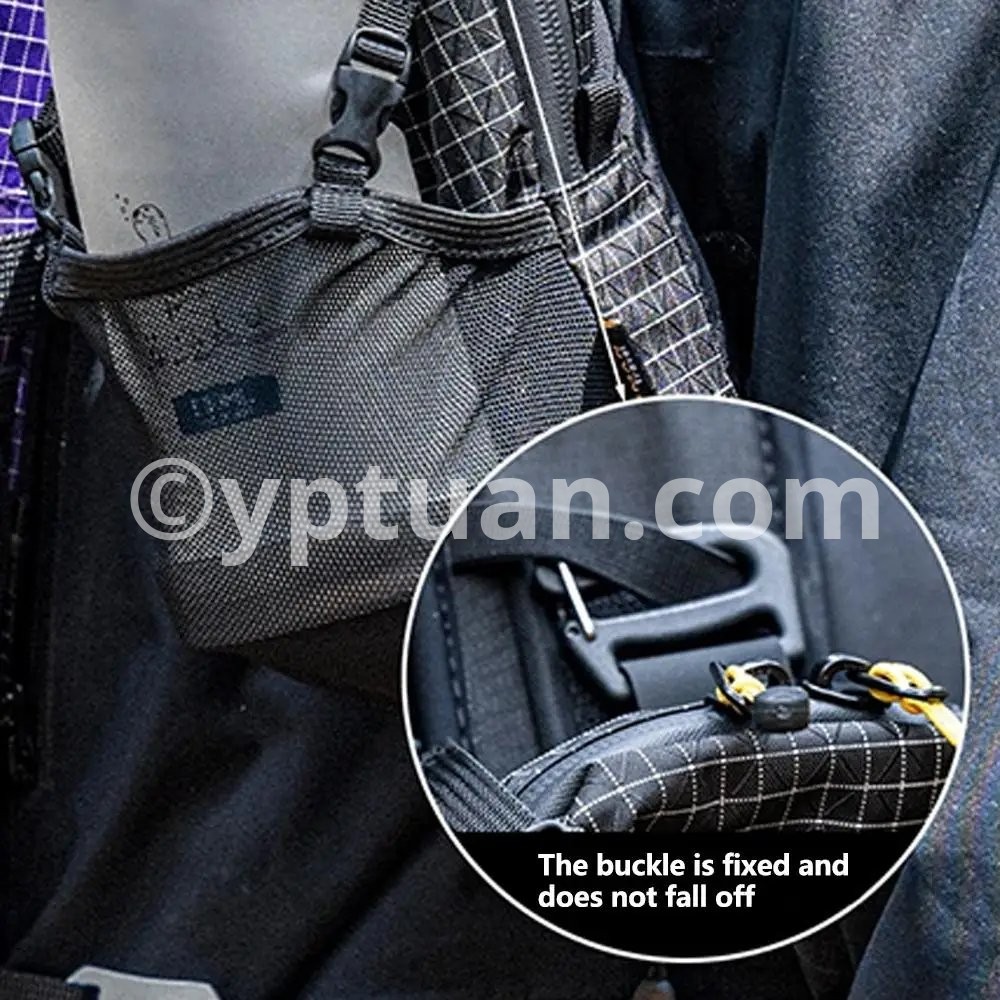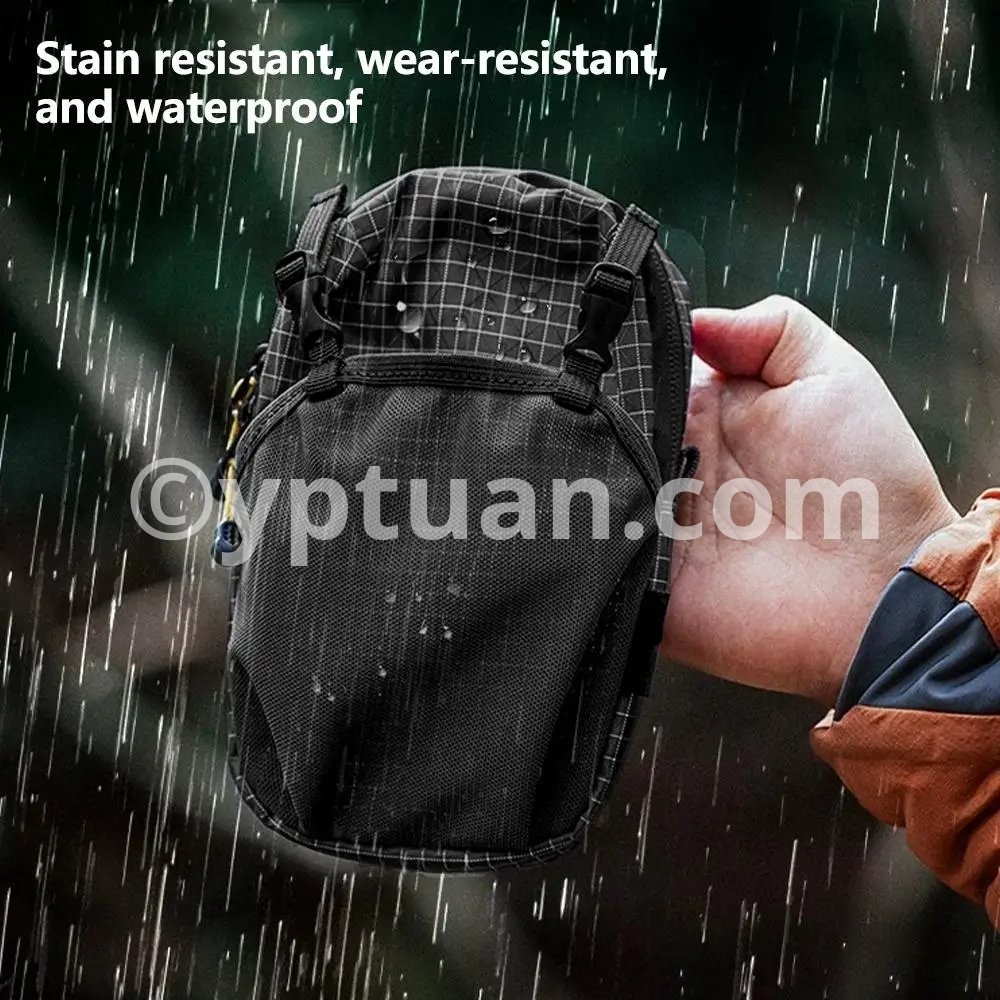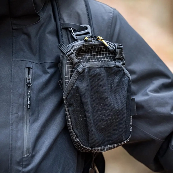 4. Versatile carrying options include attaching to a backpack's shoulder strap, using it as a crossbody bag, or as a standalone waist bag. The adjustable shoulder strap ensures it stays securely attached to a thick jacket or outdoor gear, preventing it from shifting during movement.
