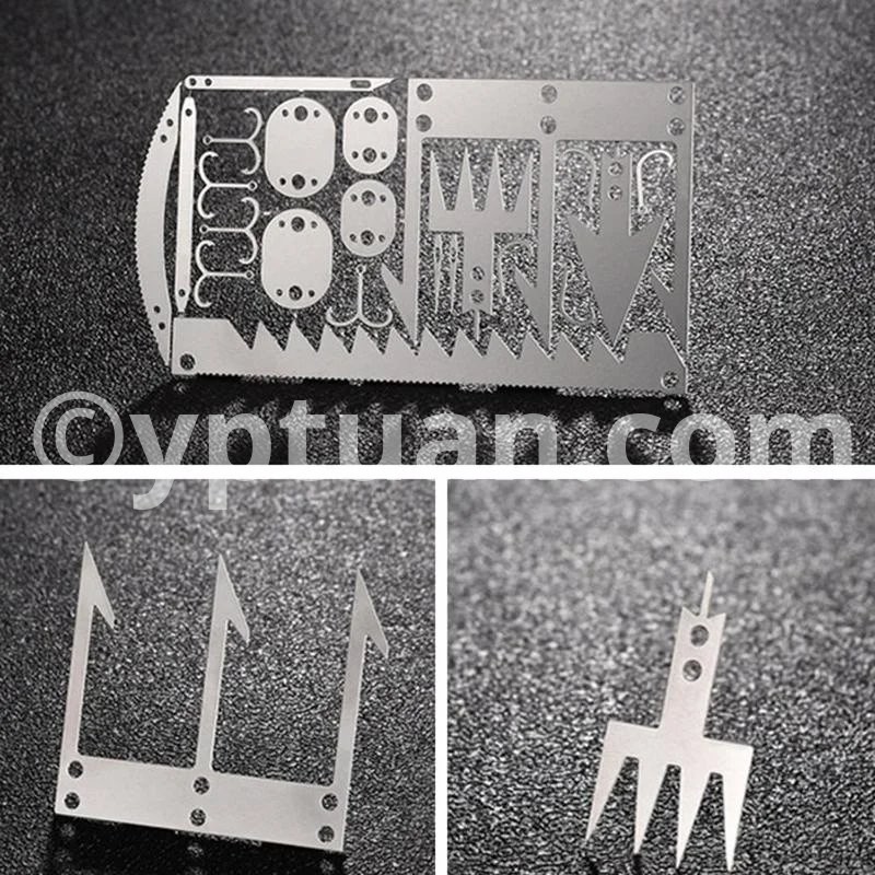 Description 100% brand new, high quality Material: steel Color: silver Shape: as shown Size: about 50 *100mm Features: The perfect accessory for outdoor survival, camping, fishing, hunting. Easy to use. Easy to carry. Durable and practical. A variety of tools for the best experience - 1 wallet size multi-function card with 22 versatile features! The rescue card emergency multi-tool has many uses: life-saving saw, sewing needle, three-pronged arrow, fish hook, army knife hook, awl, tweezers, for emergency preparation. Our survival multi-function tool card is made reliable with its stainless steel construction. This metal is not only durable but also resistant to corrosion. Versatility to meet your every situation. Survival cards can be used for camping, hiking, fishing, hunting or wilderness and other adventure activities. Quality first, providing the best service. The customer is our friend. Stylish design, 100% brand new, high quality! Note: 1. For photos, please allow slight color difference 2. Dimensions may vary due to manual measurements Package Included: 1pc fishing gear card