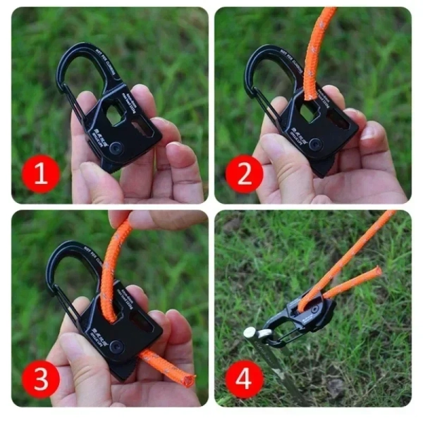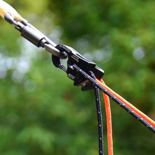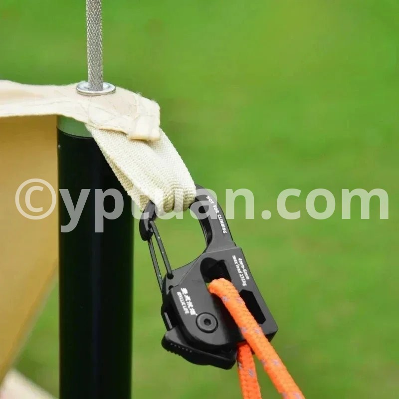 Introducing the tent rope tensioner, a must-have accessory for outdoor enthusiasts and camping enthusiasts. This innovative tensioner features a smooth, non-aggressive clutch that prevents rope damage, eliminating the need for additional cams.