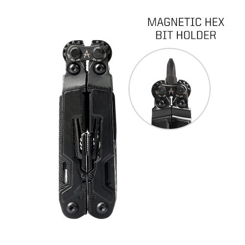 Access your EDC multitool kit without engaging the pliers. The outward-opening components are easily accessible with the multi-tool closed and will lock securely in place when opened.