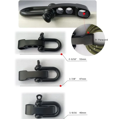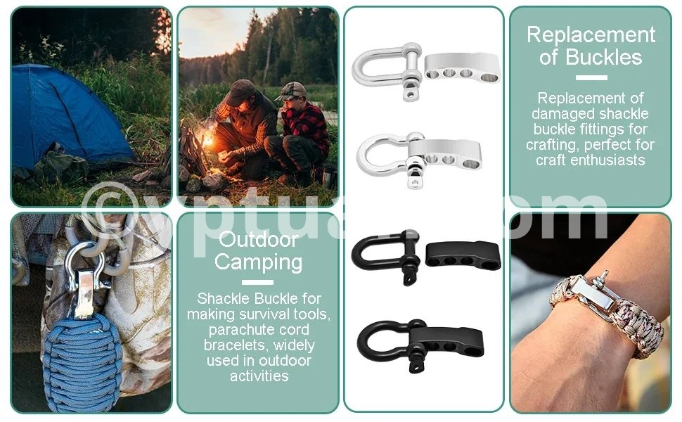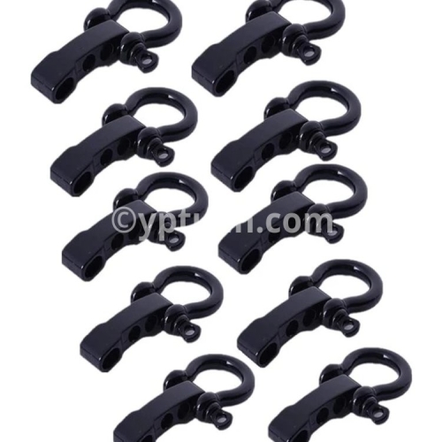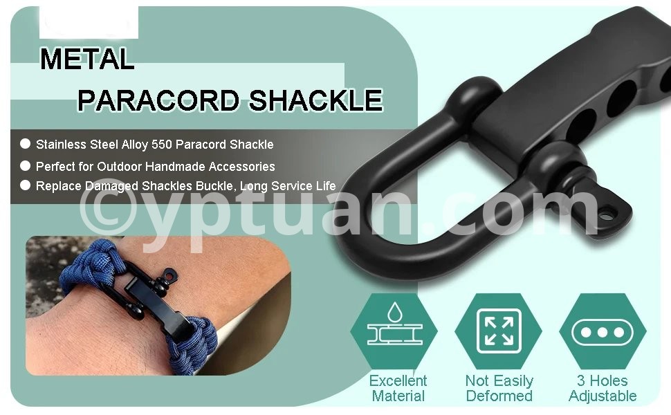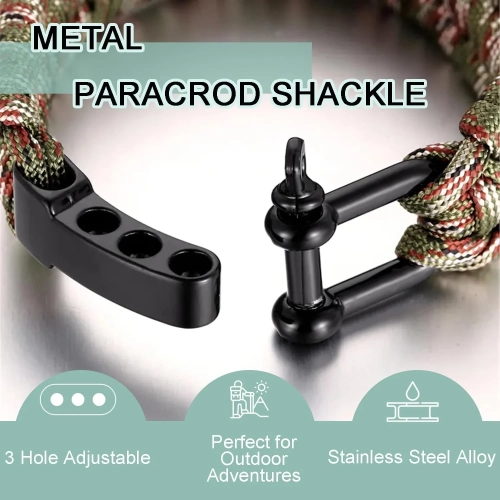 Bracelet Buckles: Made of high quality alloy, durable, lightweight, 0.56 oz/16 g Convenience: Screw Pin U-shackles -- easy to screw out and use Adjustable Clips: 3 holes buckle adjuster, adjust your bracelet length conveniently DIY U And O Shackles: Be used for connecting with survival emergency paracord bracelets Package: 10 Pcs Black Metal Paracord Clips.