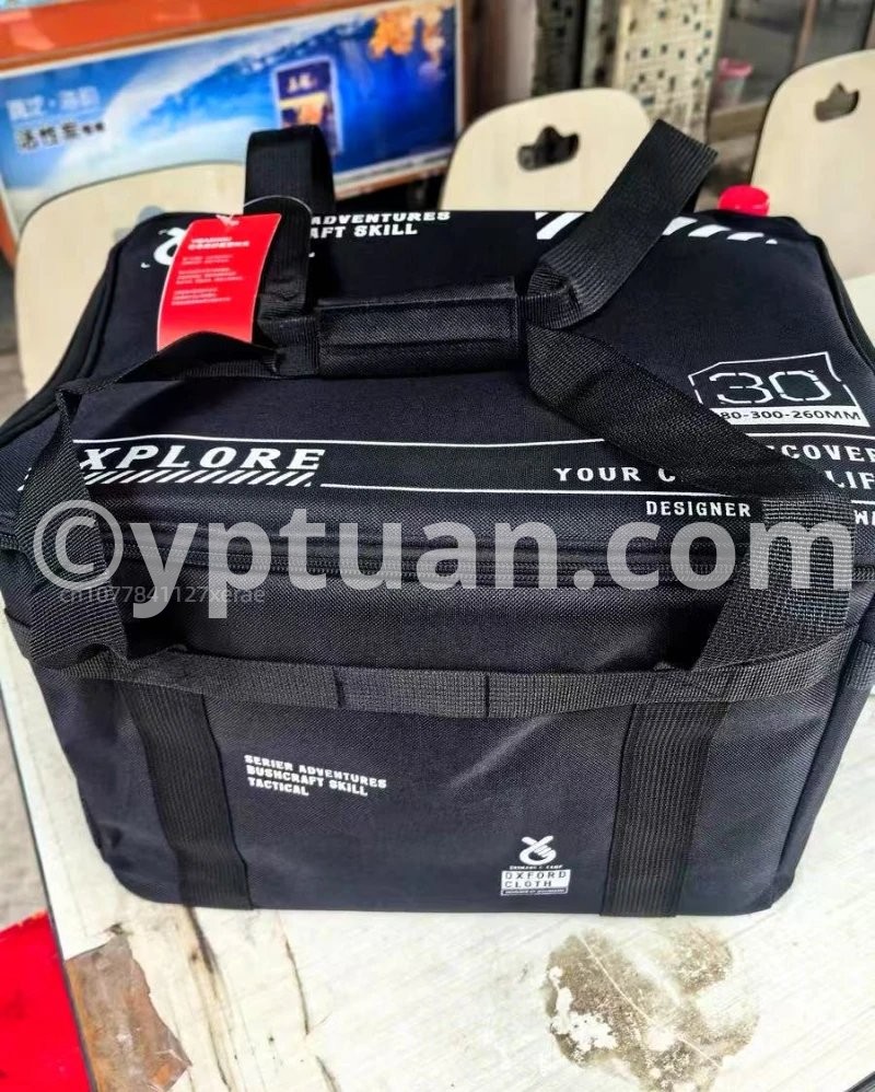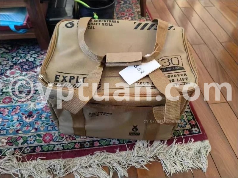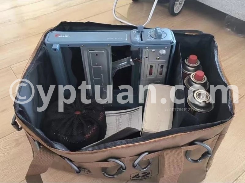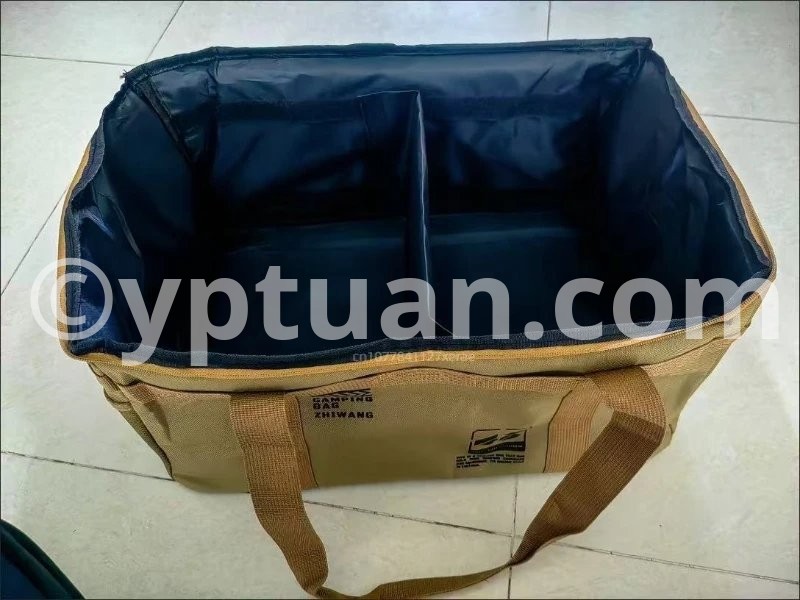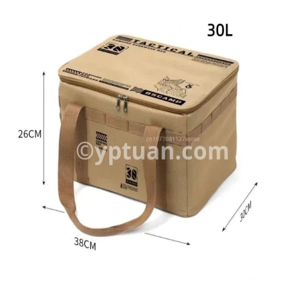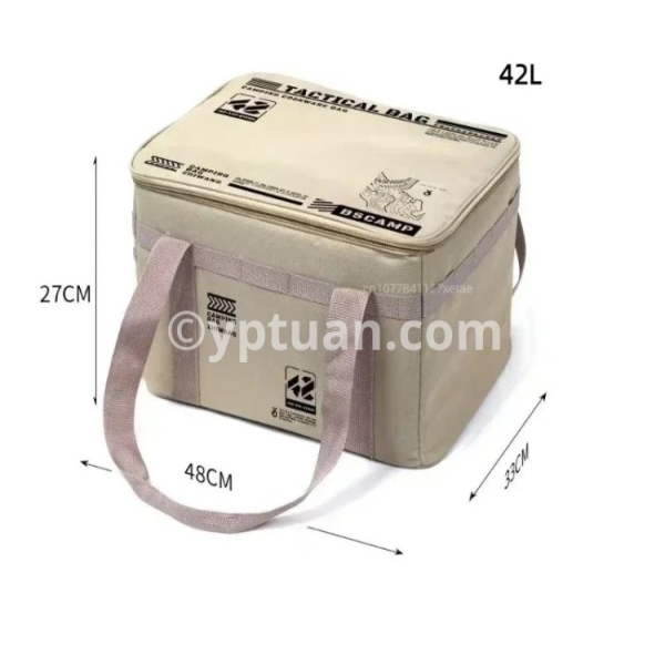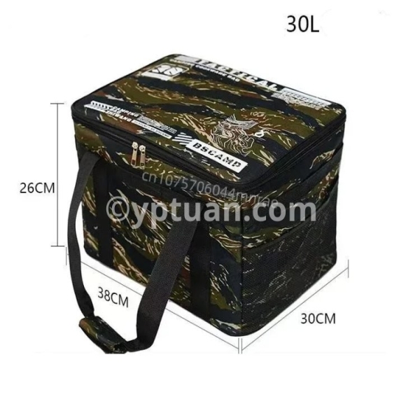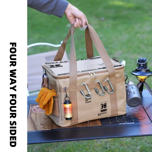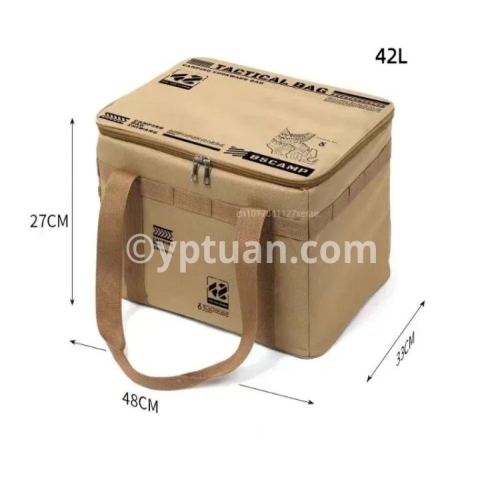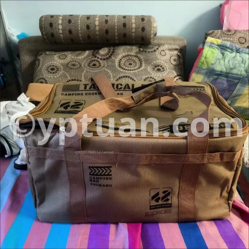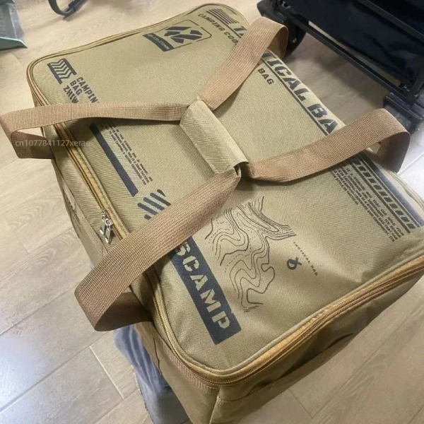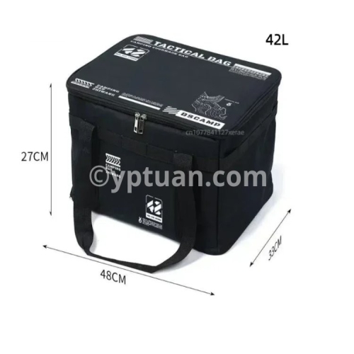 A large-capacity tactical storage bag suitable for camping outdoors, used for storing cooking utensils and tableware