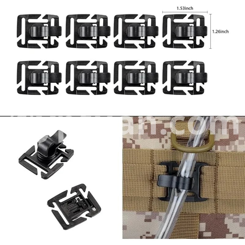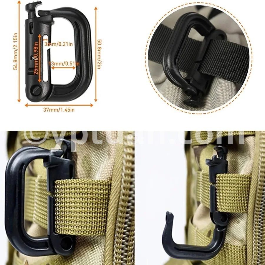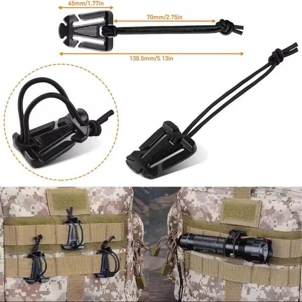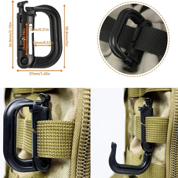 18/36 Pcs Tactical Backpack MOLLE Bag Attachments - D-Ring Locking Gear Clip Elastic Strings Strap Hydration Tube Clips Key Ring