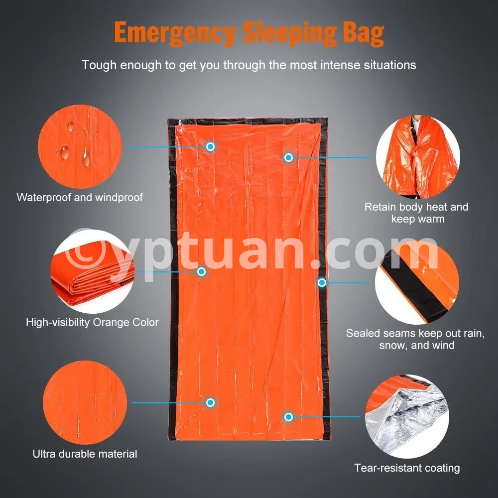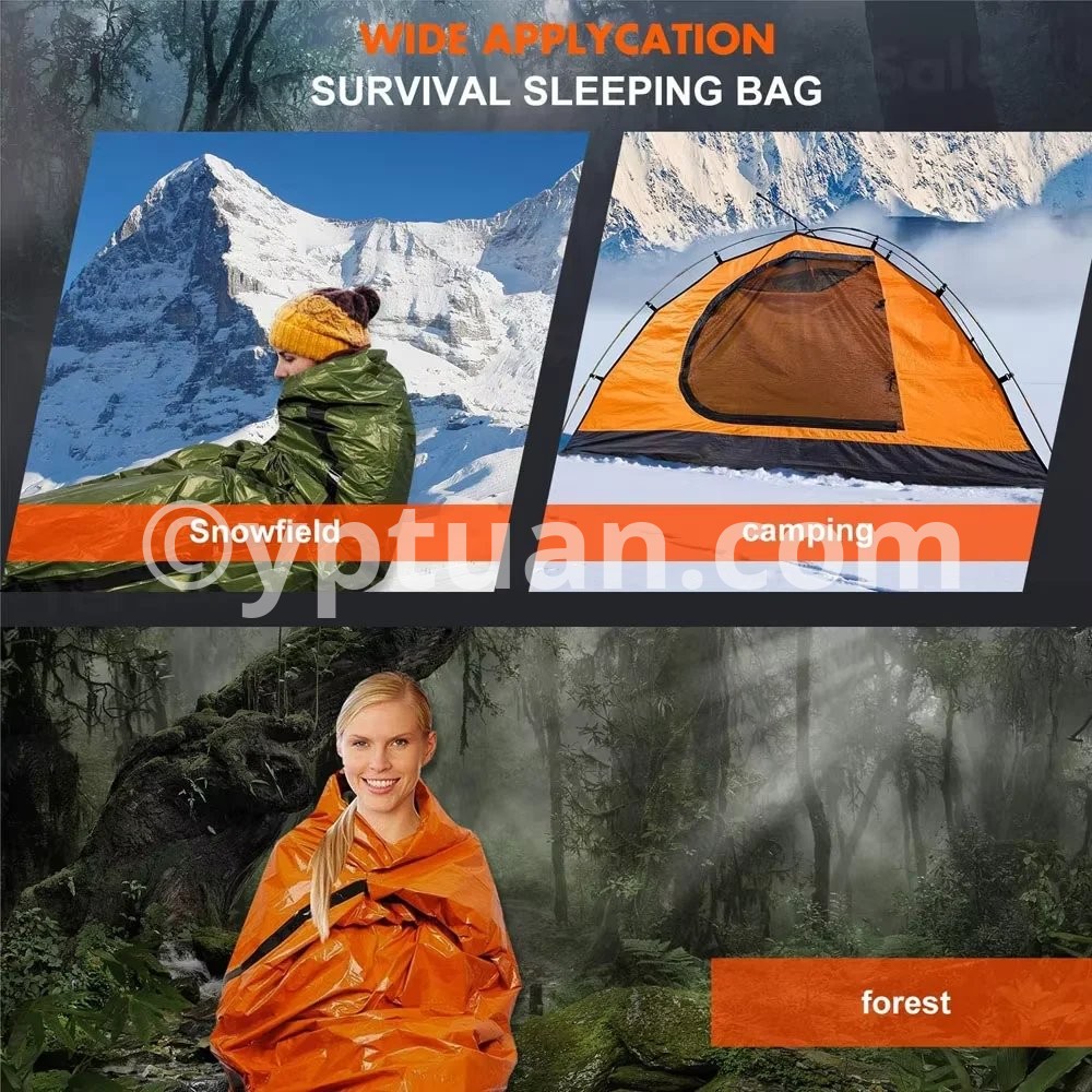 【Emergency Sleeping Bag】Stay warm and alive. It serves as a survival emergency shelter, raincoat, emergency refuge, rainproof, and windproof. In extreme environments, it can be used as a sleeping bag liner.