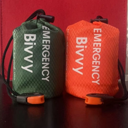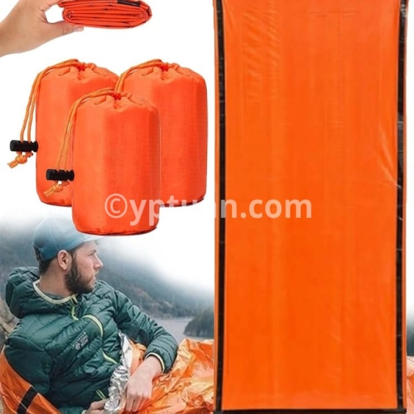 6. In the outdoor environment, this product is an international emergency life-saving product, suitable for wild exploration, investigation, tourism, and disaster use. Easy to carry, small, beautiful and practical. The survival sleeping bag rolls up in a convenient nylon drawstring bag bag, so you can store it in an insect bag, camping gear, glove box, emergency bag in your car