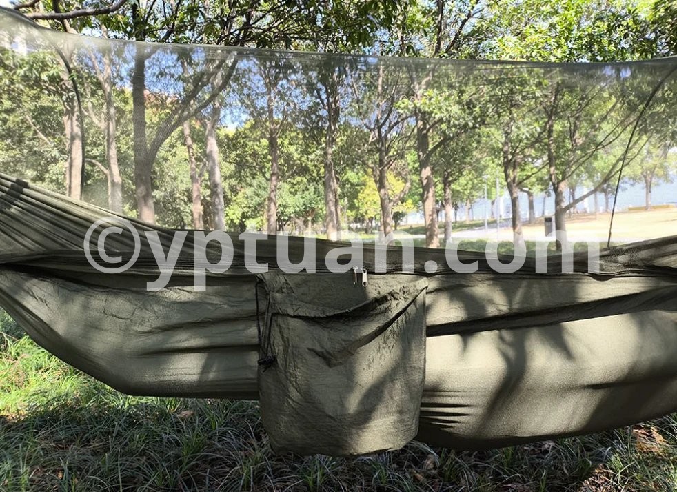 - Durable & Breathable Mosquito Net Design: Featuring an encrypted, high-quality mesh—our hammock's mosquito net provides reliable insect protection. Keep mosquitoes, bugs, and other unwanted pests at bay while enjoying a private, comfortable resting space amidst nature. Perfect for camping, hiking, backpacking, and outdoor adventures.