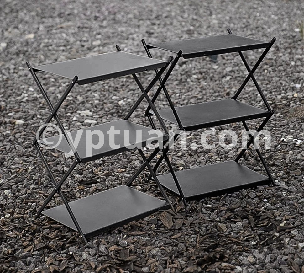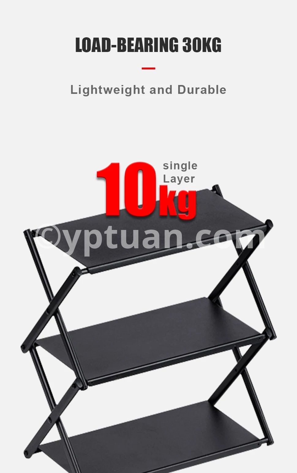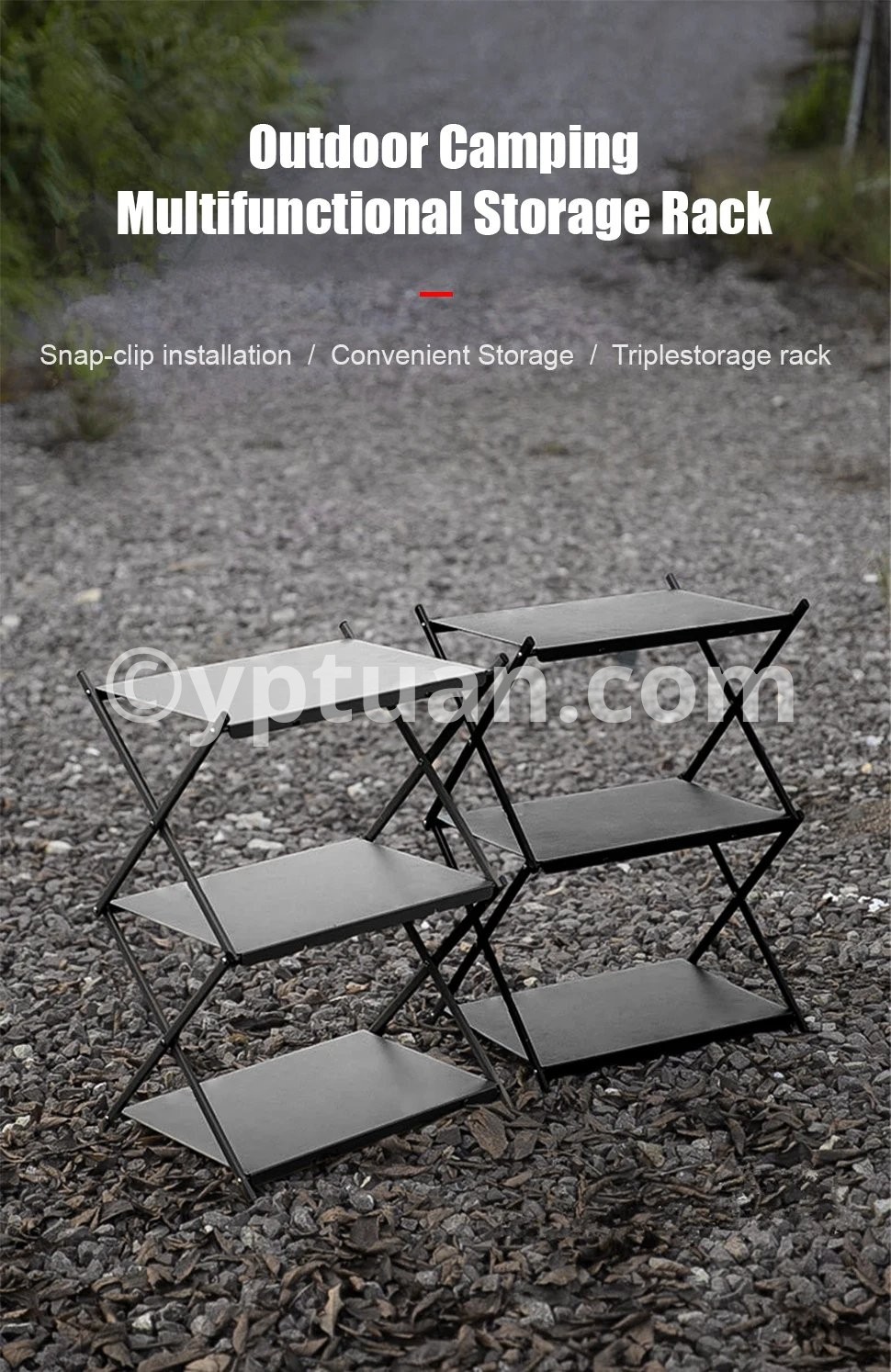 WESTTUNE Camping Three-tier Rack Outdoor Folding Storage Shelf Portable Desktop Organizer Shelves Picnic BBQ Storage Rack Table