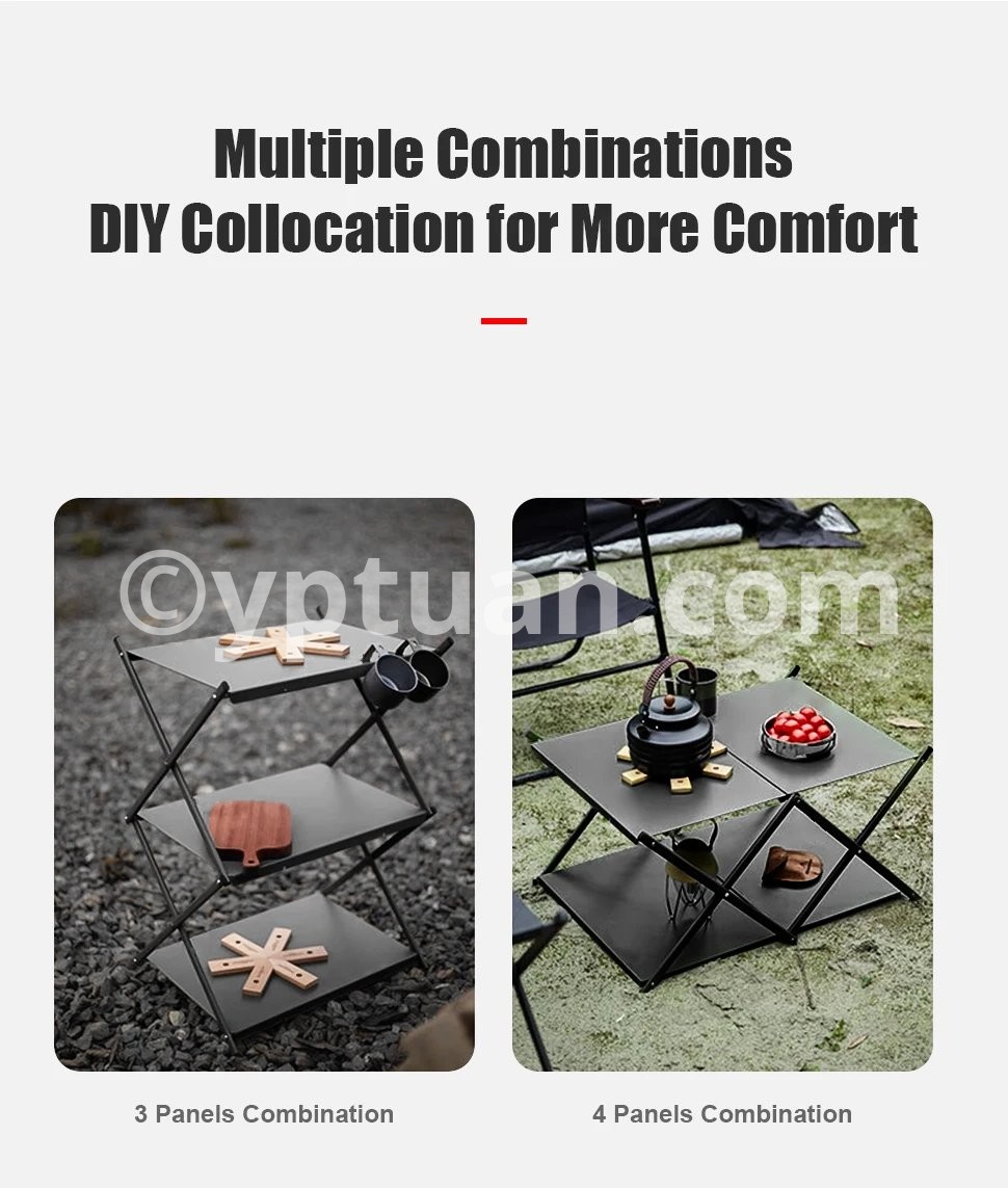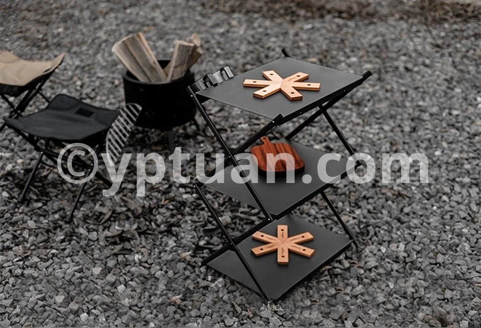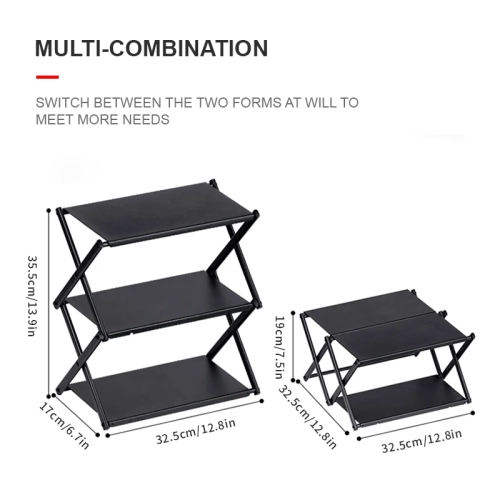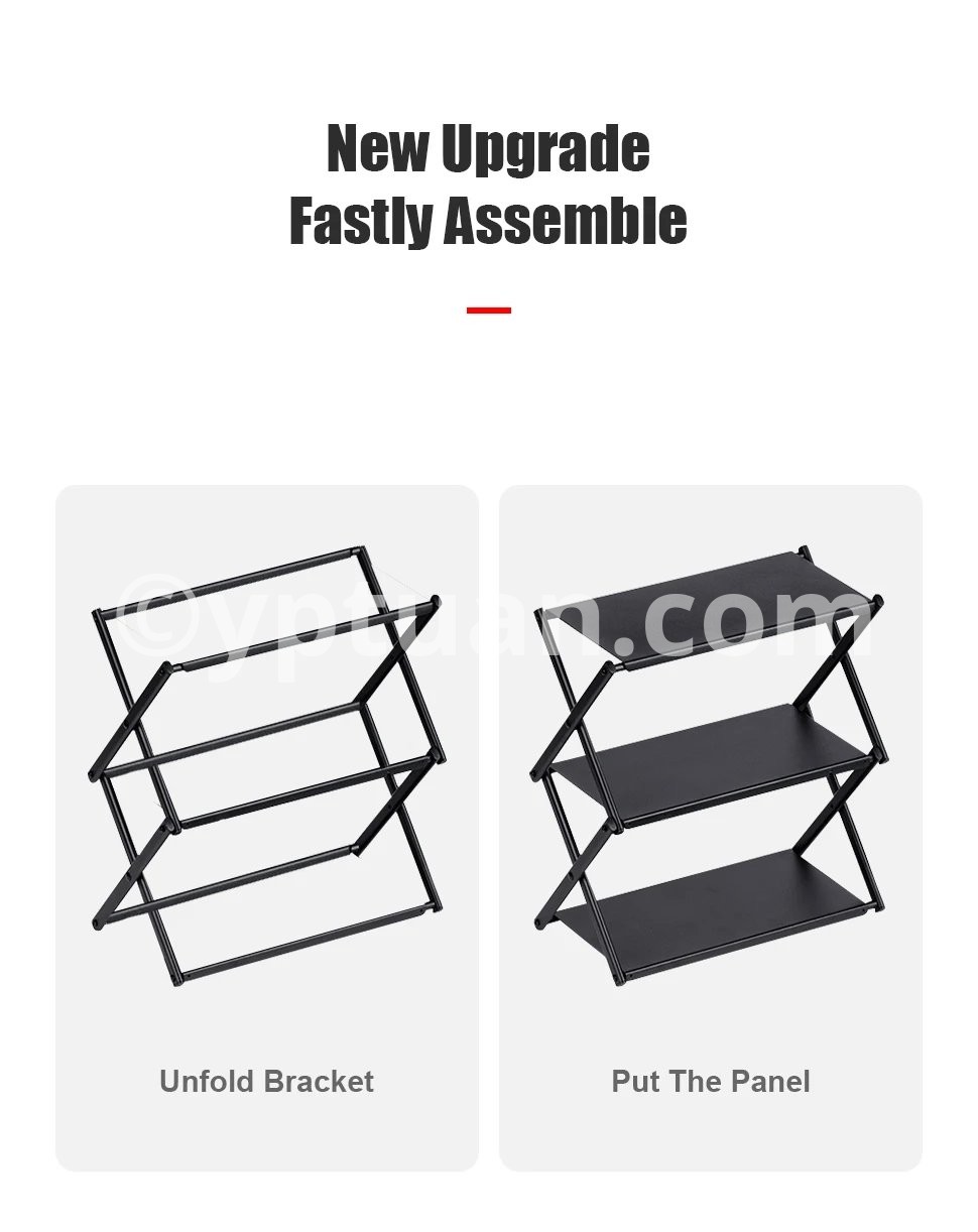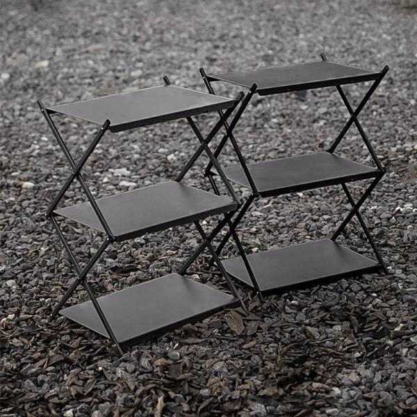 WESTTUNE Camping Three-tier Rack Outdoor Folding Storage Shelf Portable Desktop Organizer Shelves Picnic BBQ Storage Rack Table