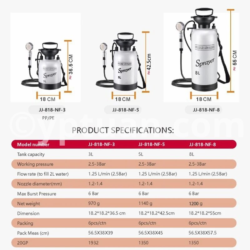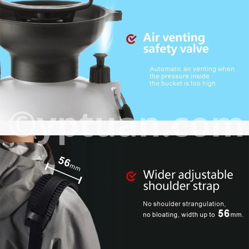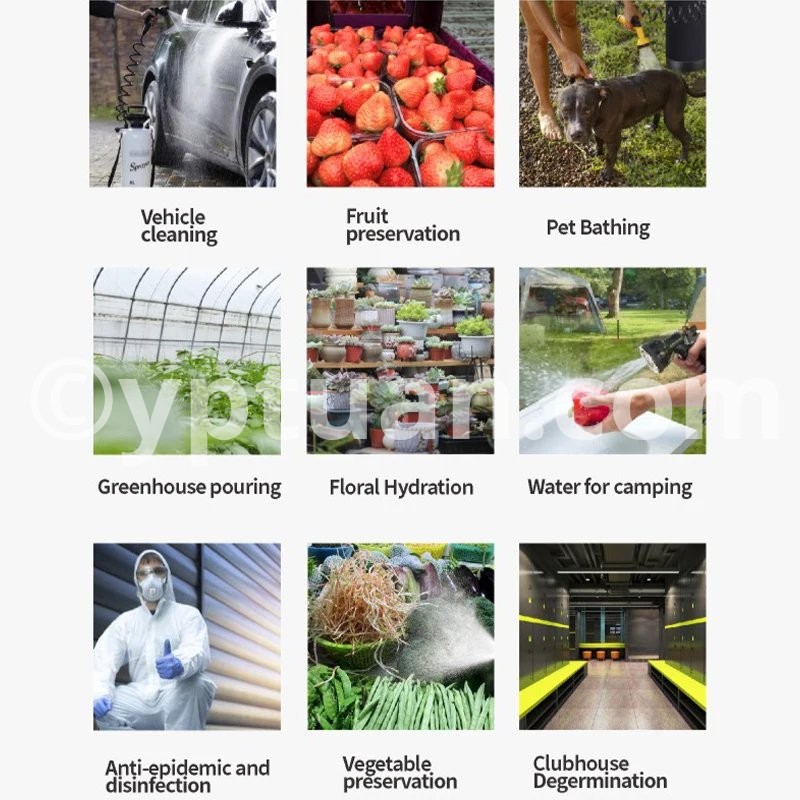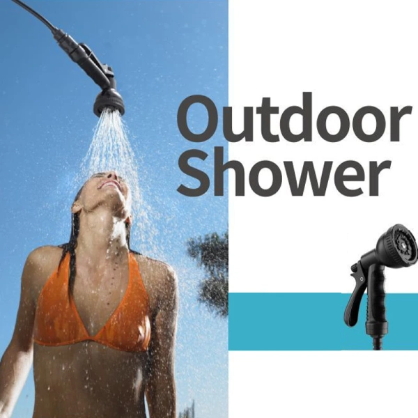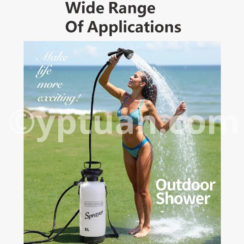 【Widely Used】Whether you're at a remote campground, or in a beach parking lot after surfing, a portable camping shower will ease your cleaning efforts. If you've ever tried to wash mud off your dog's paws, clear sand from a dirty bag, Portable shower could do you a favor. 【Working Principle】Portable shower uses the pressurized air in a sealed container to press the water out for shower (the water can be sprayed for about 1 minute when the air is full,water volume can be adjusted by switch on the shower head, and the water spray time is inversely proportional to water flow of the shower head), no need to connect the faucet or use electricity, with just water you can take a refreshing shower anywhere. 【Auto and Manual Pressure Relief】When using the shower, if the air pressure is too high, the pressure relief valve will automatically discharge the excess air to achieve a decompression effect. You can also gently pull the pressure relief valve to empty the pressure in the barrel, and then unscrew the pump to pour out the excess water.