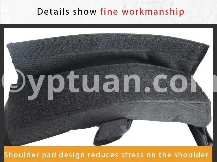 Shoulder straps have fasten tape designed to adjust the shoulder strap length as required by the user.