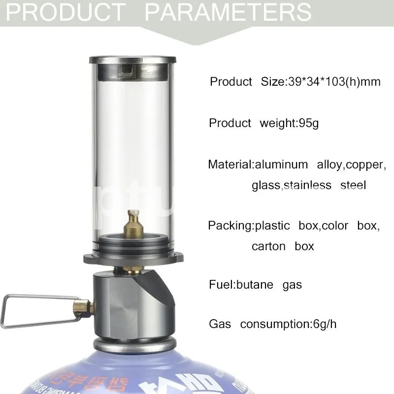 Features: This product is suitable for camping,picnic and self-drive and so on. Easy to carry,because it has mini body and light weight. It has low gas consumption,only about 6g/h. Attention: Please don't use it indoor,inside of car and inside of tent,or it may lead to carbon monoxide poisoning. It will have high temperature when using it and after using it,please pay attention to avoid being scalded. Product not including the gas tank.