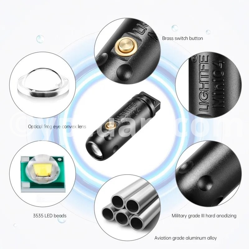 Aluminum Alloy Mini Flashlight Outdoor Survival Tool LED Pocket Keychain Light with Necklace for Camping Fishing Hike Flashlight